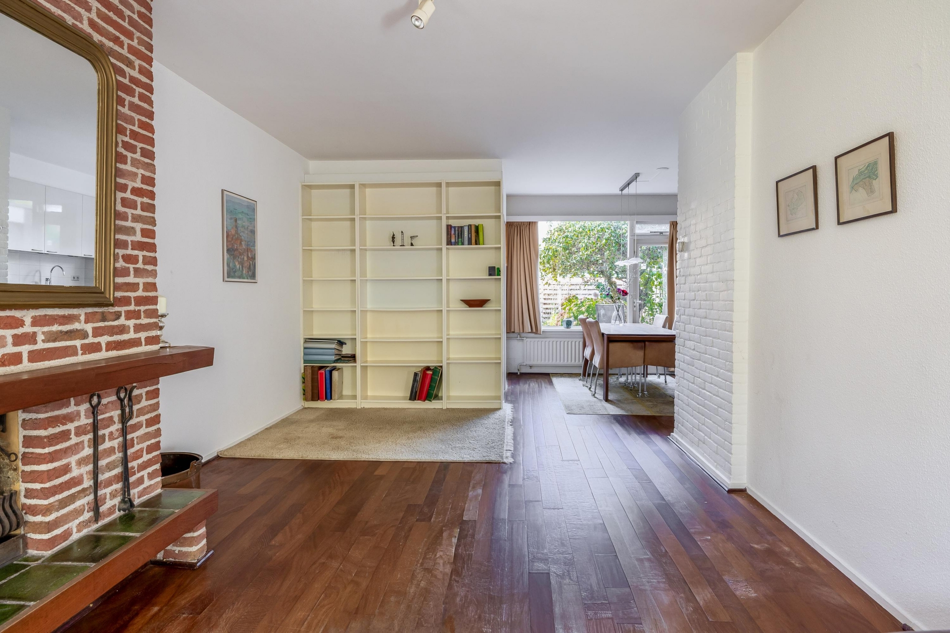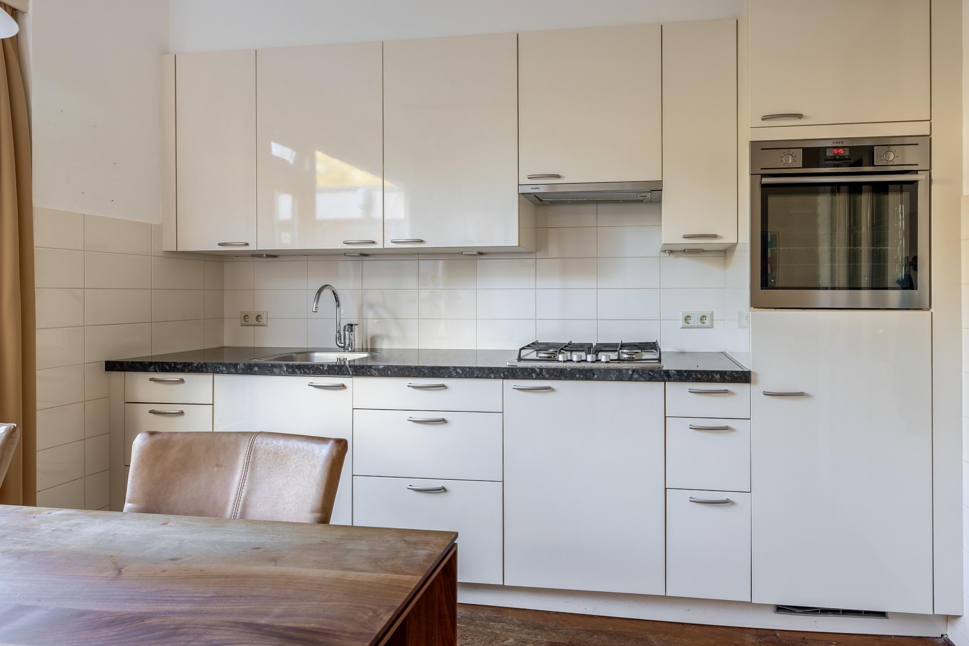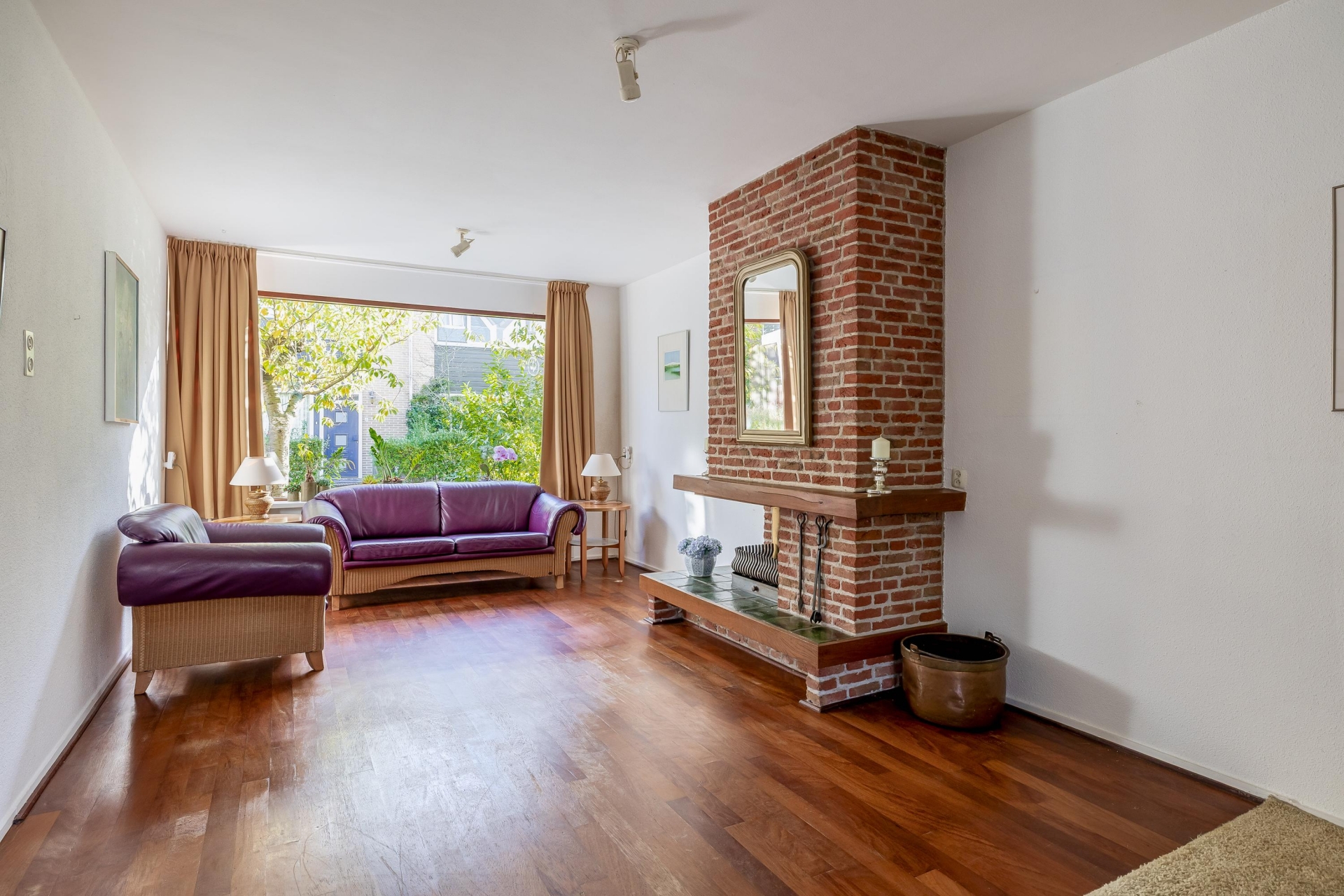 Via de verzorgde voortuin bereikt u de entree van de woning. De hal beschikt over een meterkast, toiletruimte met fonteintje en een trapkast. De lichte doorzonwoonkamer heeft een sfeervolle haard en staat in open verbinding met de keuken, die is voorzien van diverse inbouwapparatuur waaronder een koelkast, 4-pits kookplaat, oven en afzuigkap.