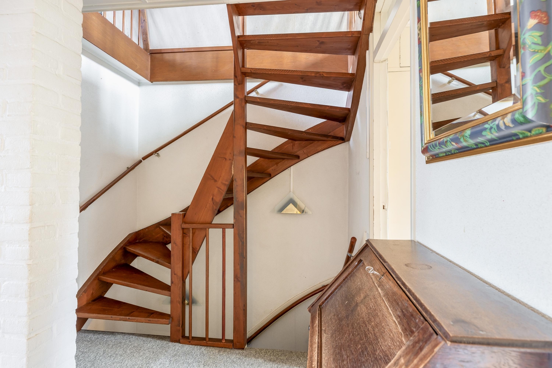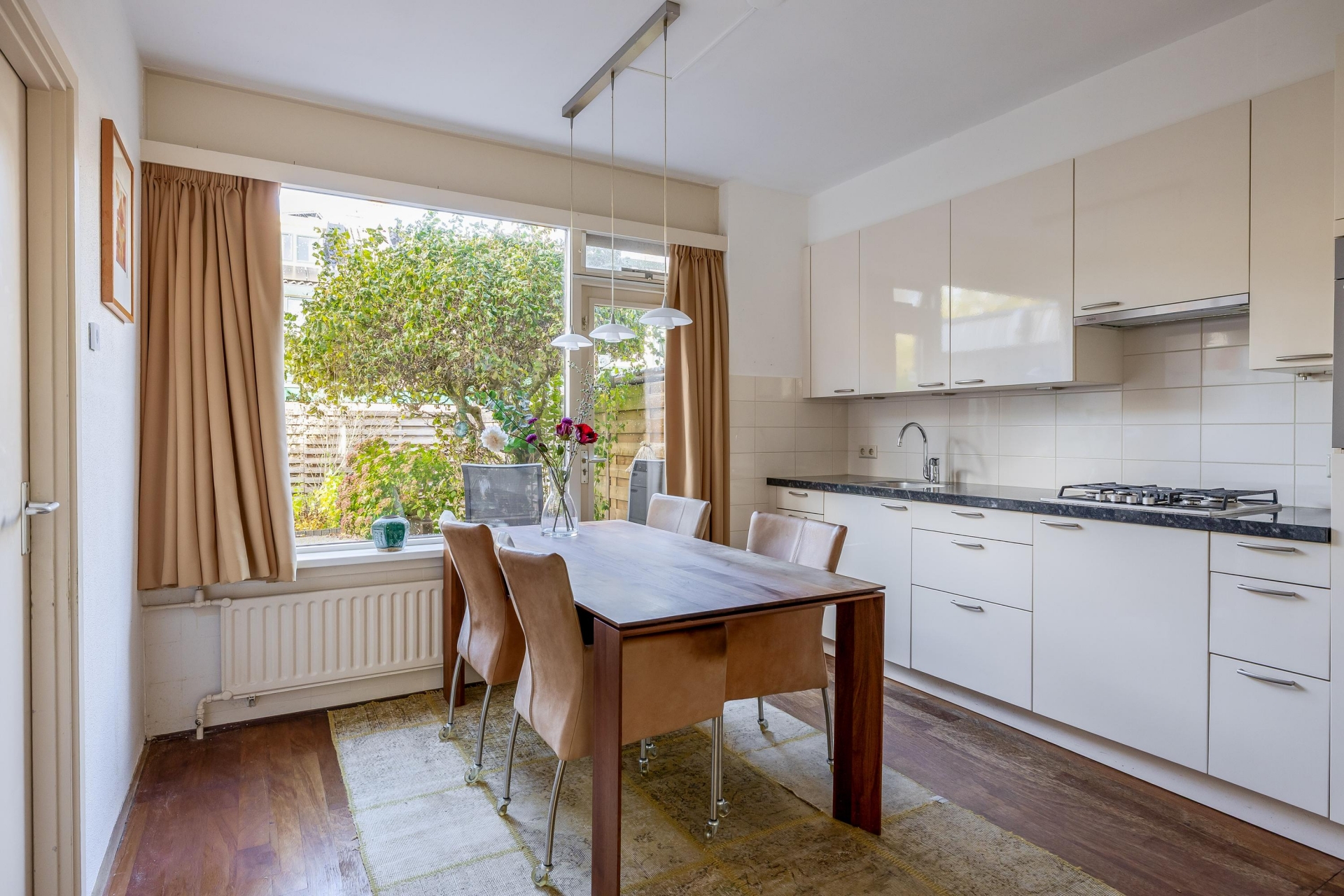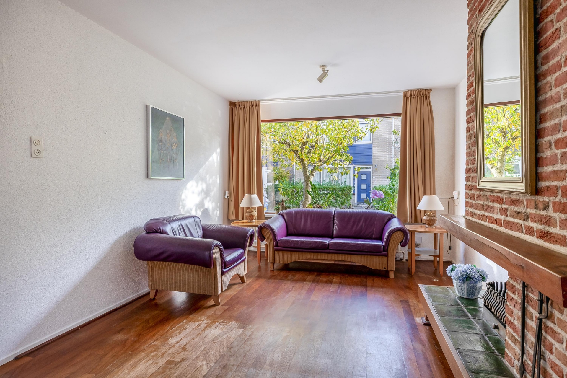 Via de verzorgde voortuin bereikt u de entree van de woning. De hal beschikt over een meterkast, toiletruimte met fonteintje en een trapkast. De lichte doorzonwoonkamer heeft een sfeervolle haard en staat in open verbinding met de keuken, die is voorzien van diverse inbouwapparatuur waaronder een koelkast, 4-pits kookplaat, oven en afzuigkap.