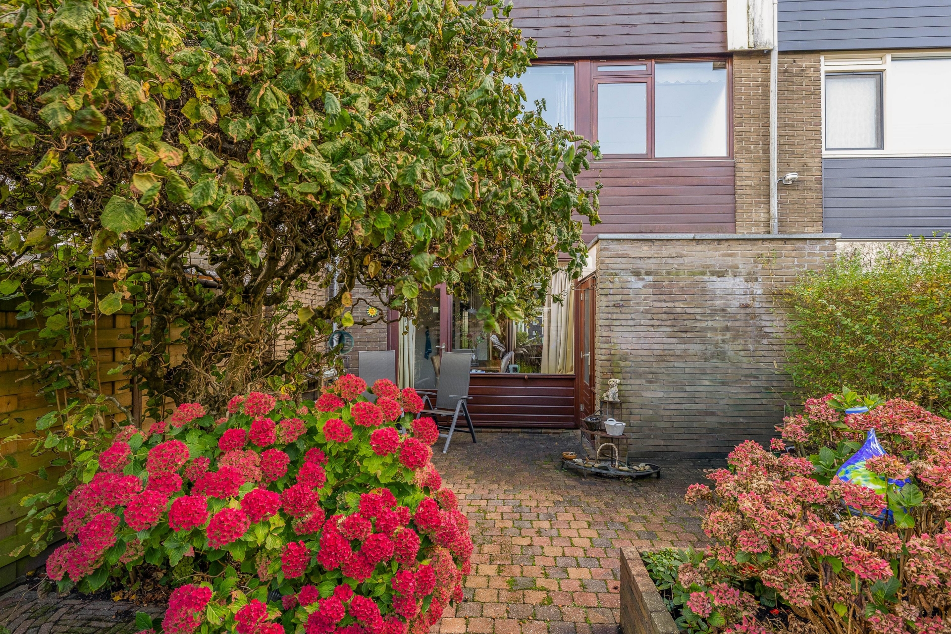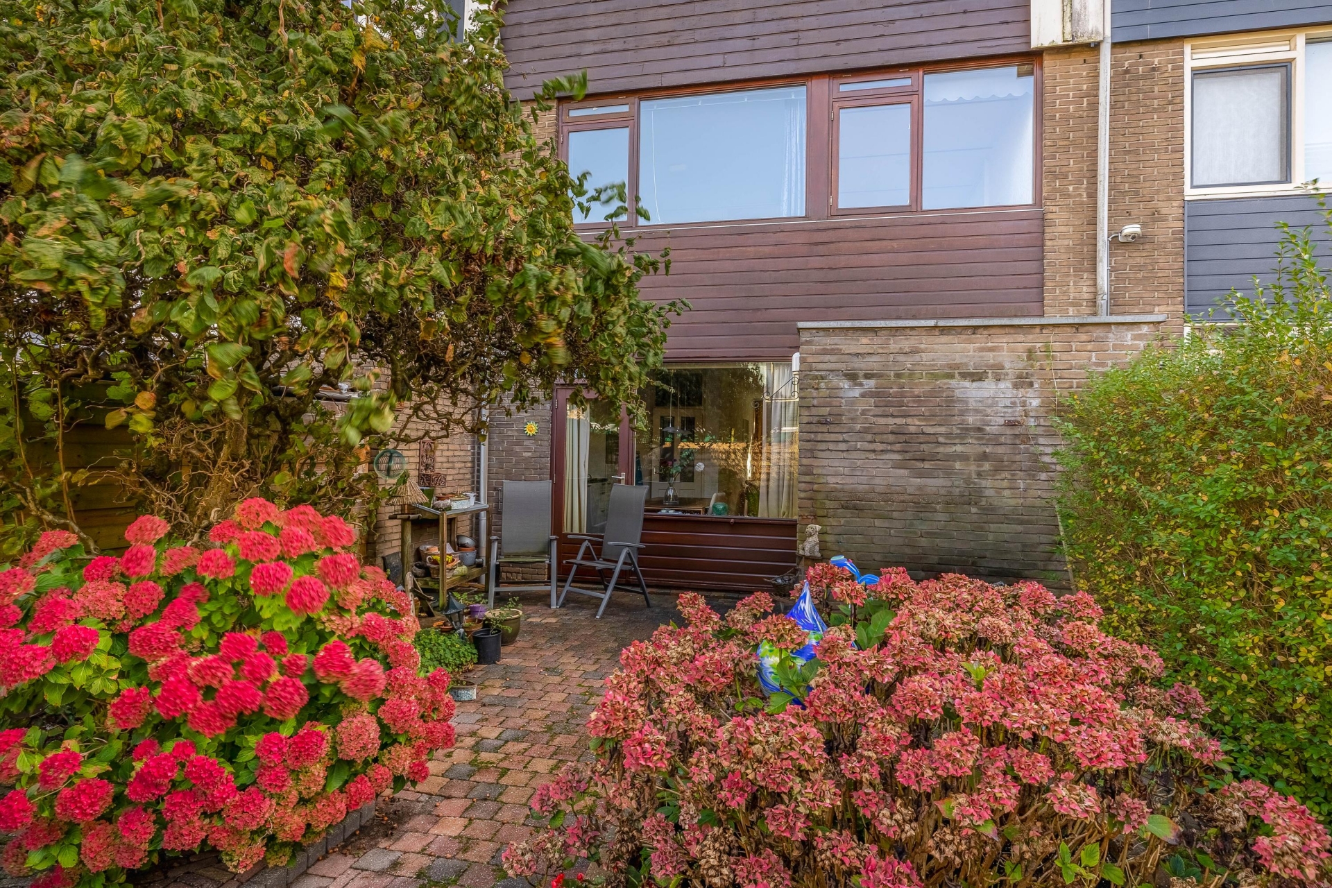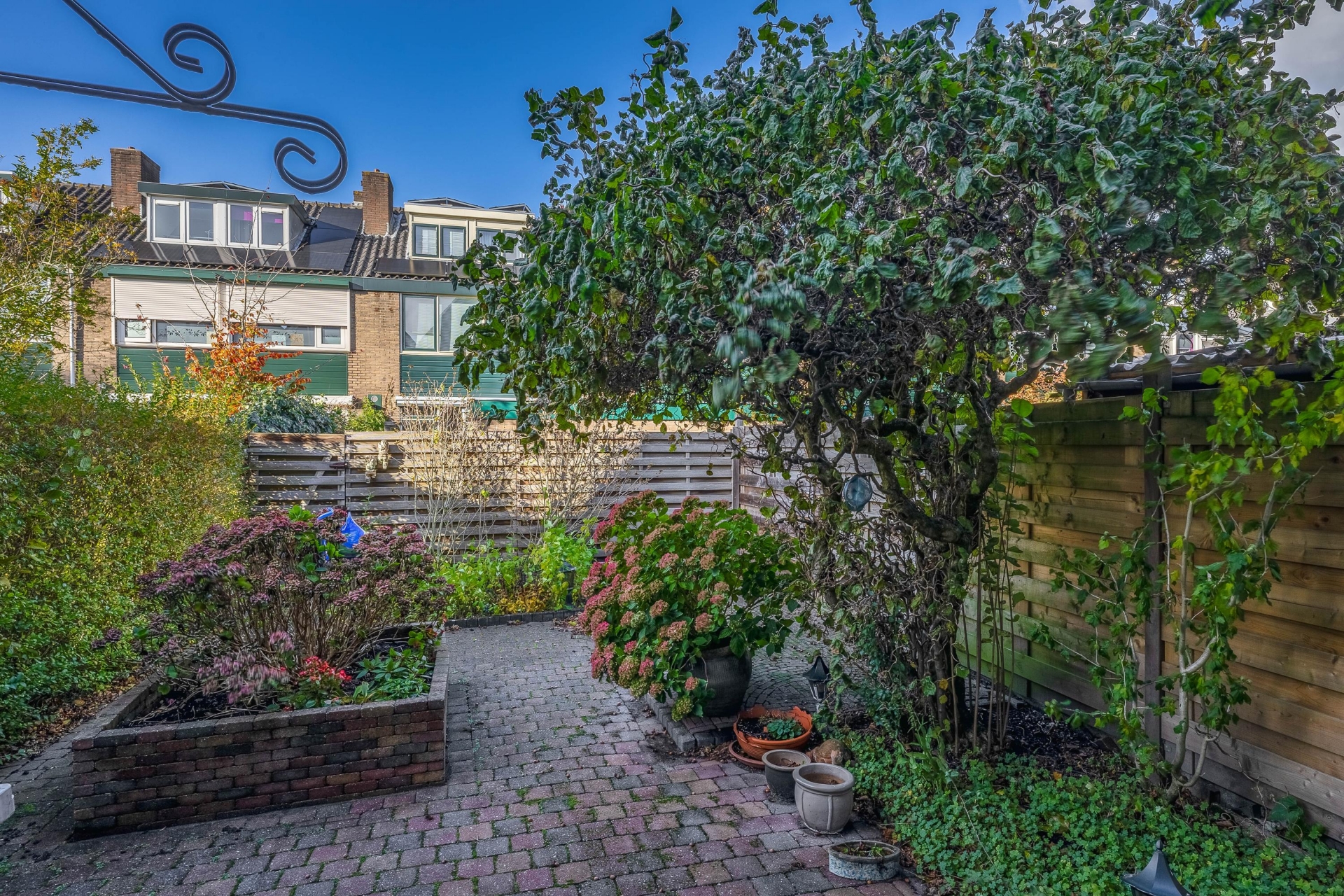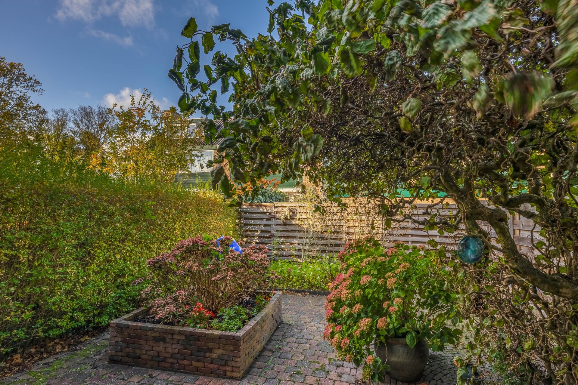 Via de keuken is er toegang tot de fijne achtertuin, voorzien van een aangebouwde stenen berging uitgerust met elektra, verwarming en een wasmachineaansluiting. De achtertuin is fraai aangelegd en biedt een fijne zithoek.