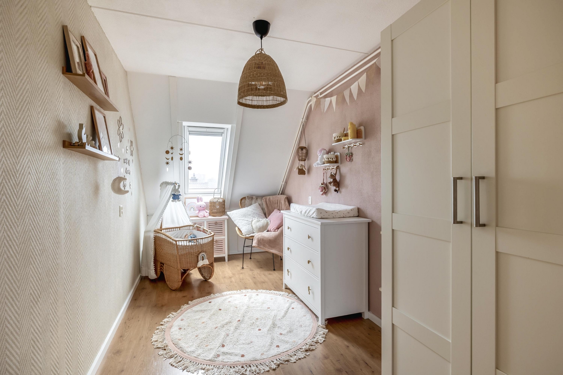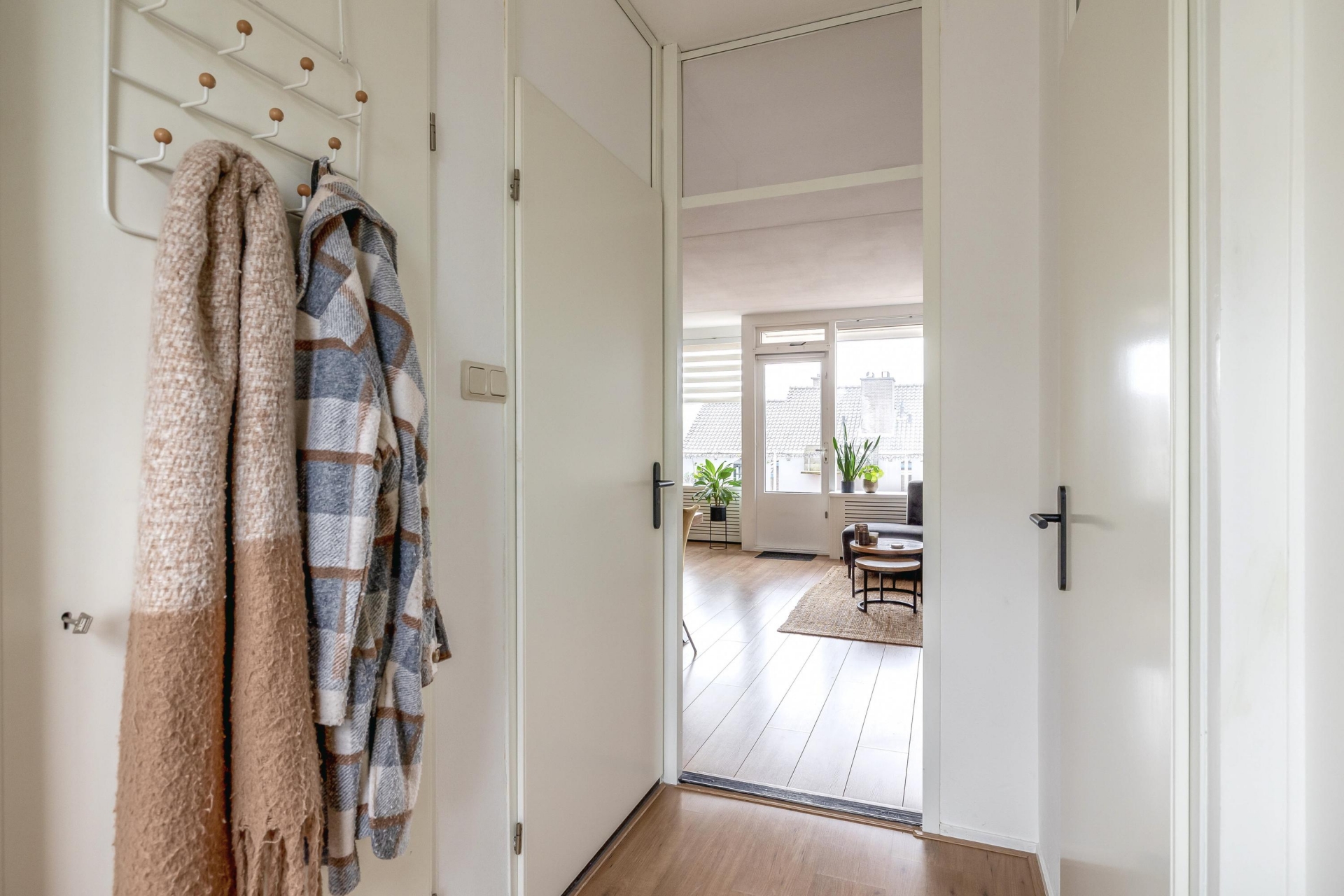 Bij binnenkomst valt direct de prettige lichtinval op. Dankzij de grote raampartijen aan de woonkamerzijde voelt het geheel open en fris aan. De woonkamer zelf is royaal opgezet met voldoende ruimte voor een gezellige zithoek én een eethoek bij de half open keuken. De laminaatvloer en de rustige afwerking maken het geheel tot een warme leefruimte waar je zó kunt intrekken; klussen is hier echt niet nodig.