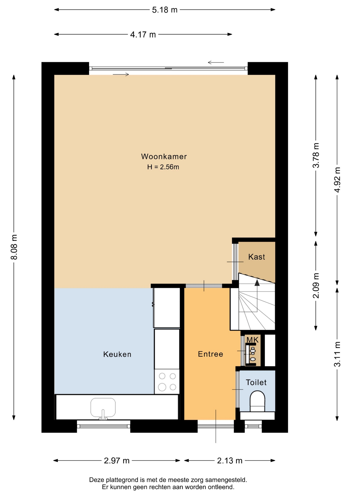 “Deze informatie is door ons met de nodige zorgvuldigheid samengesteld. Onzerzijds wordt echter geen enkele aansprakelijkheid aanvaard voor enige onvolledigheid, onjuistheid of anderszins, dan wel de gevolgen daarvan. Alle opgegeven maten en oppervlakten zijn indicatief.”