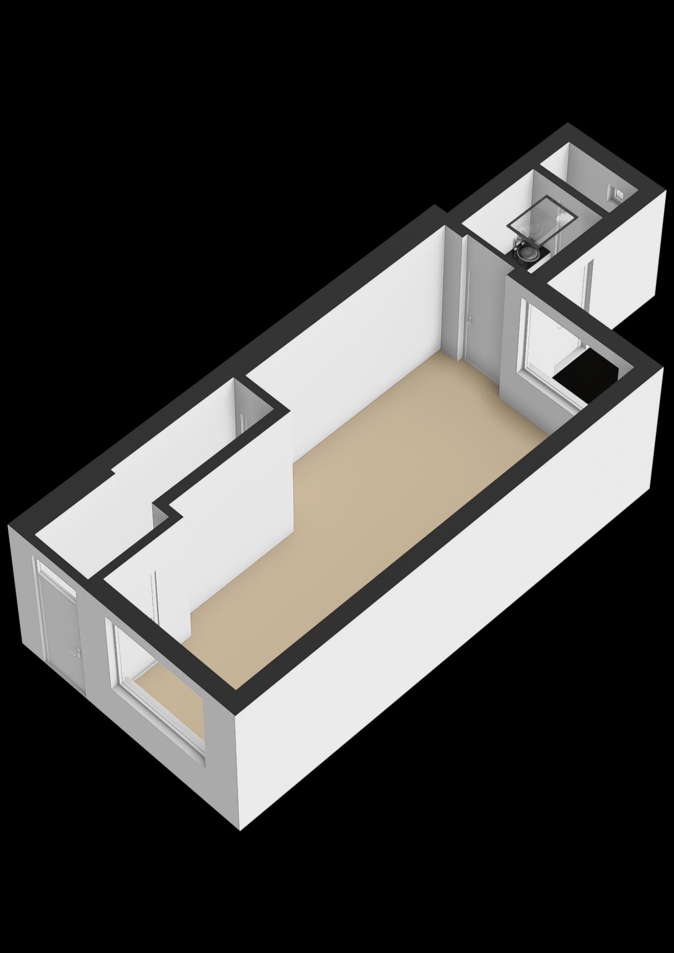 Beneden is er een lichte woonkamer met handige trapkast en toegang tot de eenvoudige, maar functionele keuken. De keuken is voorzien van een inductiekookplaat,een combi oven/magnetron en een (elektrische) keukenboiler, een prima basis, met mogelijkheden om naar eigen smaak te moderniseren. Naast de keuken is het toilet separaat.