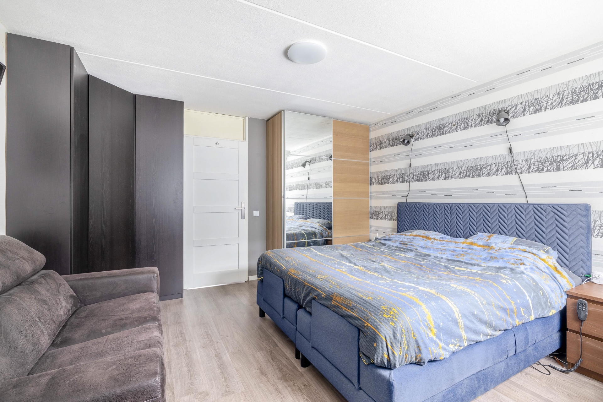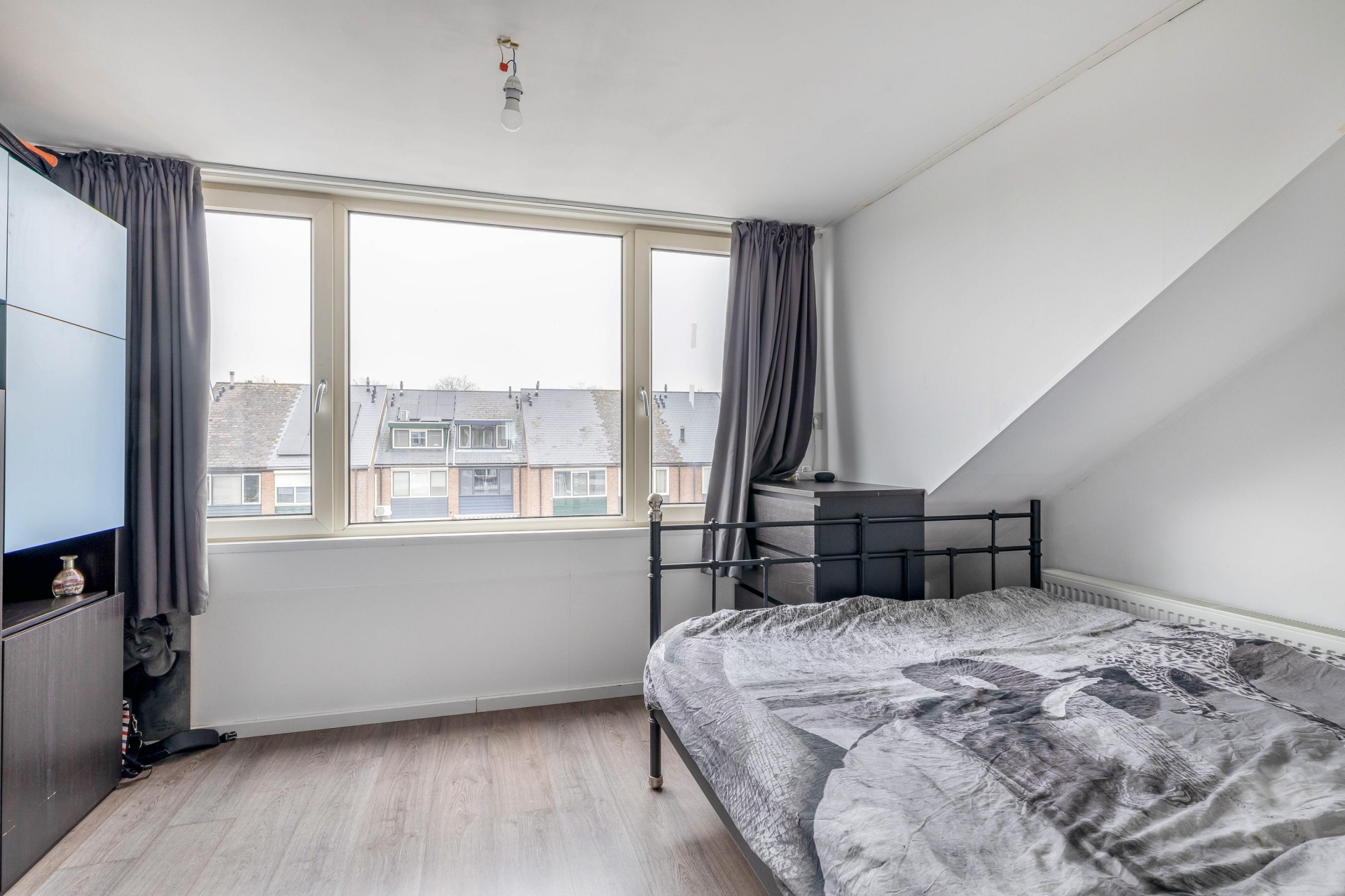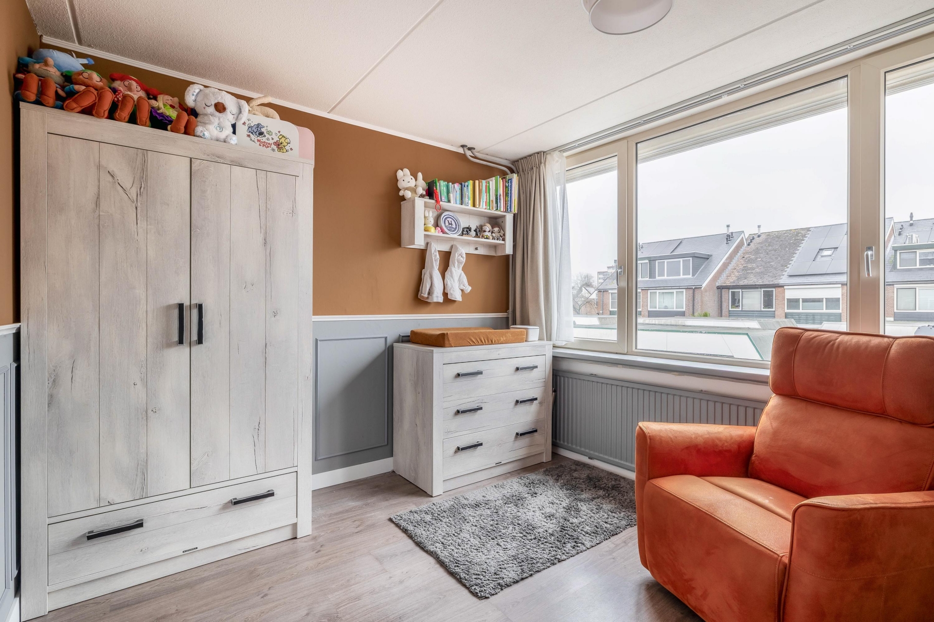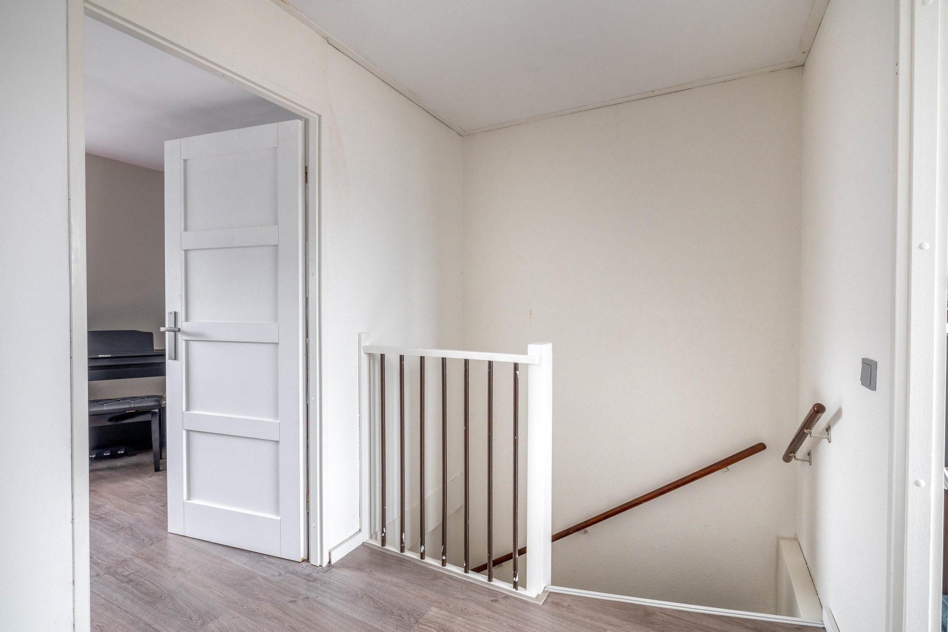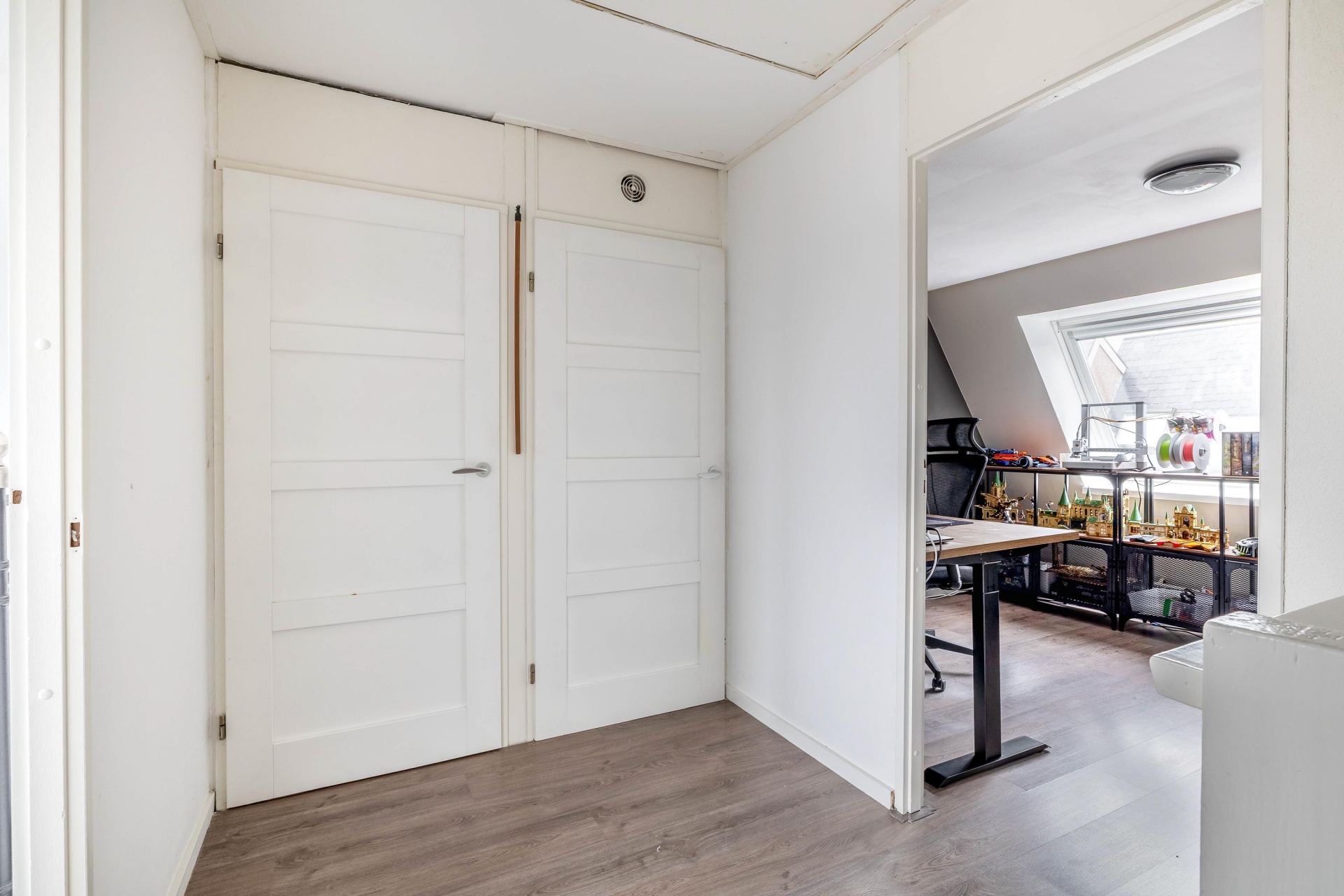 Overloop met toegang tot twee slaapkamers, een waskast, CV-kast en de opbergvliering. De derde slaapkamer aan de voorzijde beschikt over een groot dakraam. De vierde slaapkamer aan de achterzijde is voorzien van een dakkapel met kunststof kozijnen.