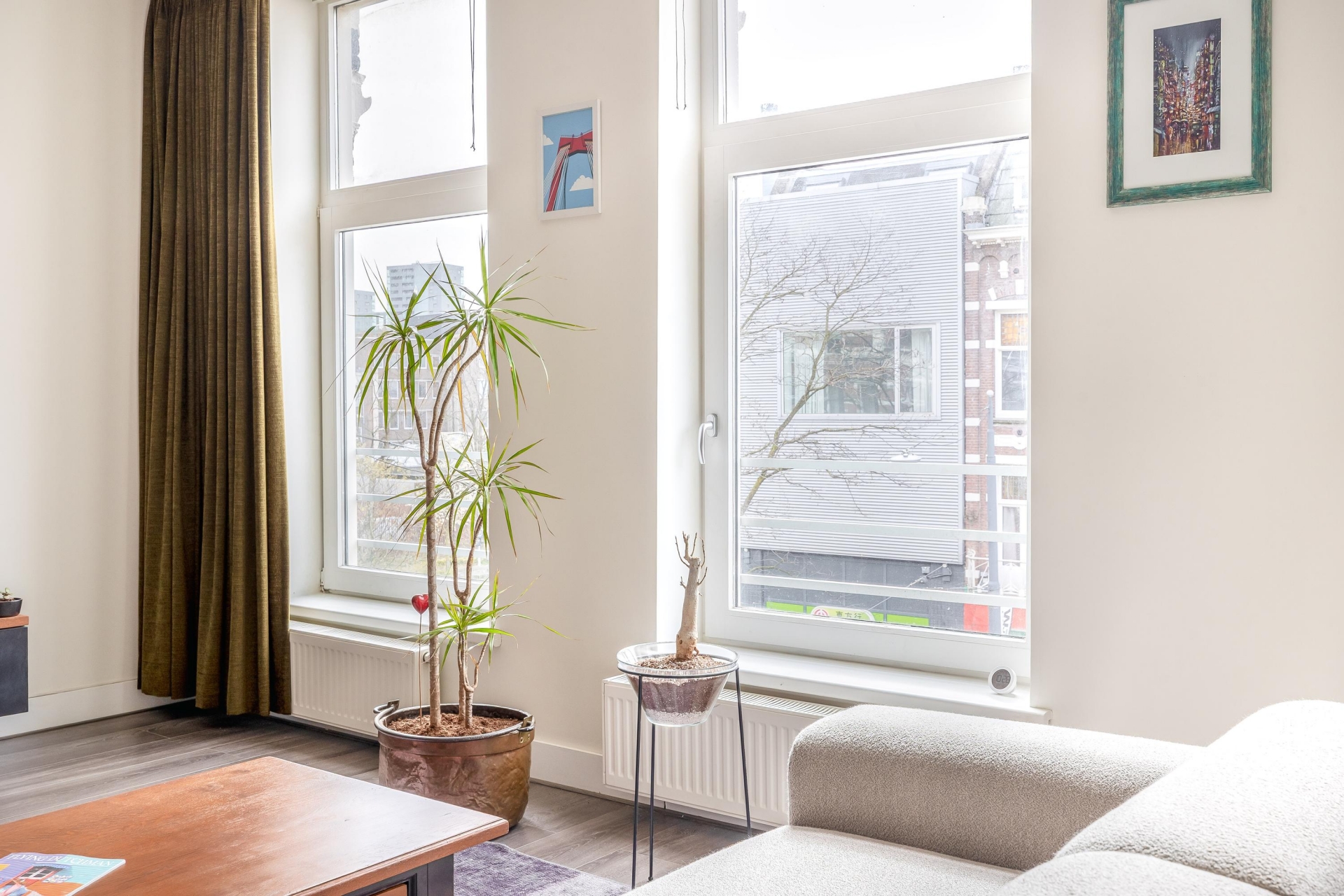 Wat ik ga missen aan dit huis zijn de prachtige hoge plafonds, die elke kamer een heerlijk ruimtelijk en statig karakter geven. De badkamer is voor mij de ultieme plek om tot rust te komen; het ligbad is echt een luxe waar ik dagelijks van geniet. De locatie is simpelweg onverslaanbaar, want binnen 5 minuten lopen sta ik op Rotterdam Centraal. Je woont hier midden in de dynamiek van de stad met werkelijk alles – van hippe koffietentjes tot de dagelijkse boodschappen – direct om de hoek. Het is de perfecte plek voor wie houdt van het bruisende centrum, maar binnen wil genieten van rust en comfort