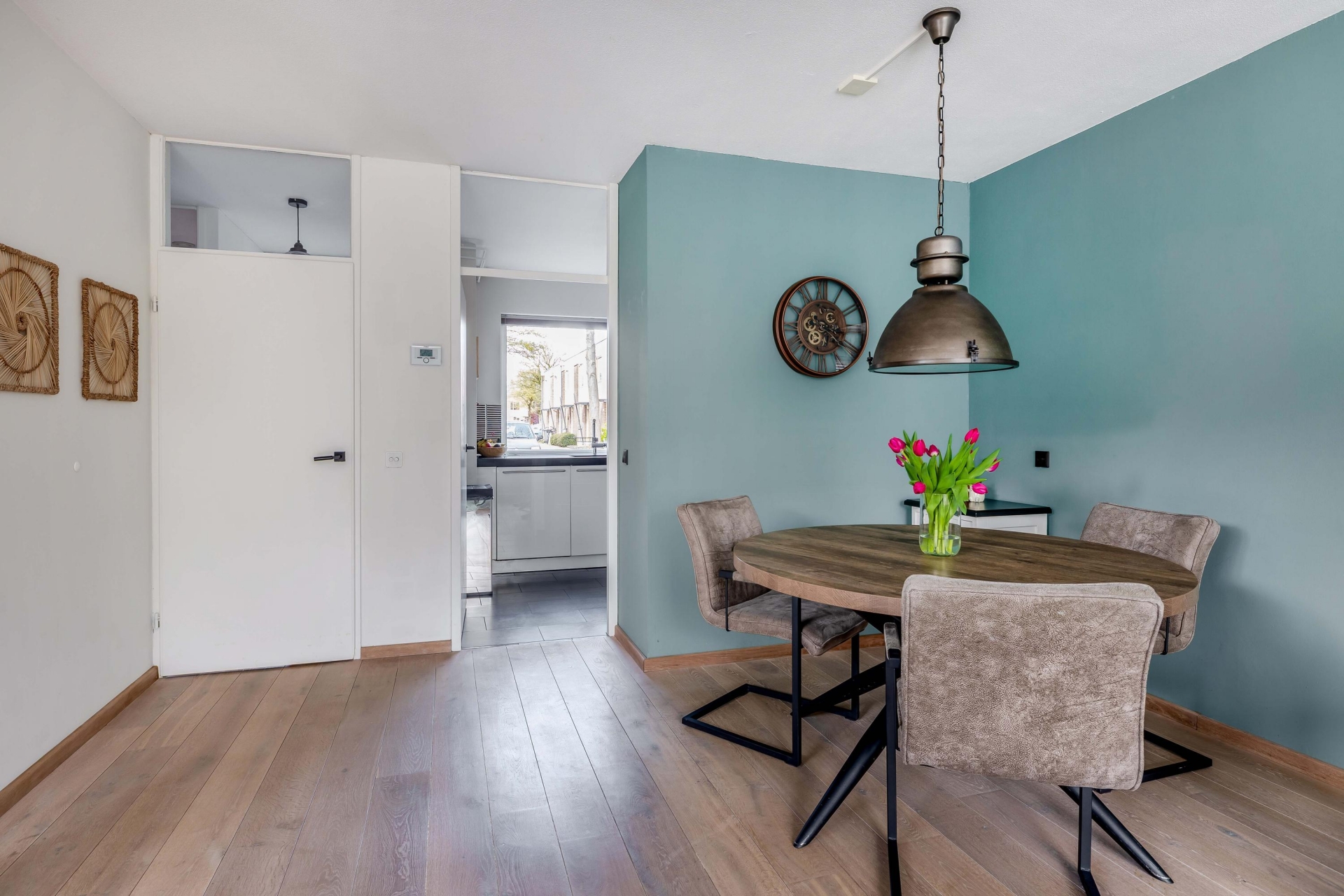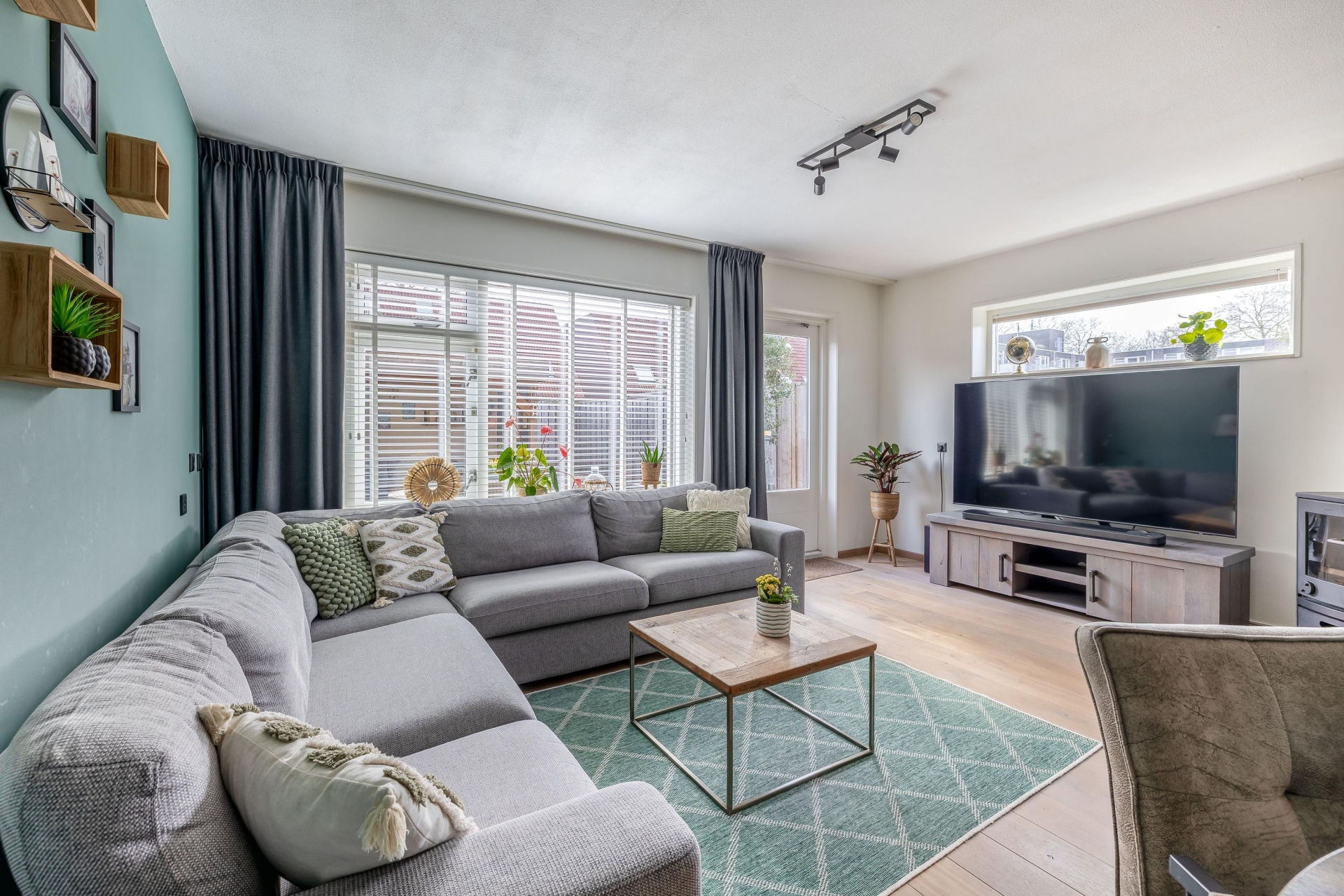 De zithoek is ruim opgezet en biedt voldoende plek voor een comfortabele bank en een gezellige eethoek. De rustige kleuren en verzorgde afwerking maken dat je hier eigenlijk direct kunt intrekken zonder grote aanpassingen. Dit is zo’n huis waar je binnenkomt en denkt: dit klopt gewoon.