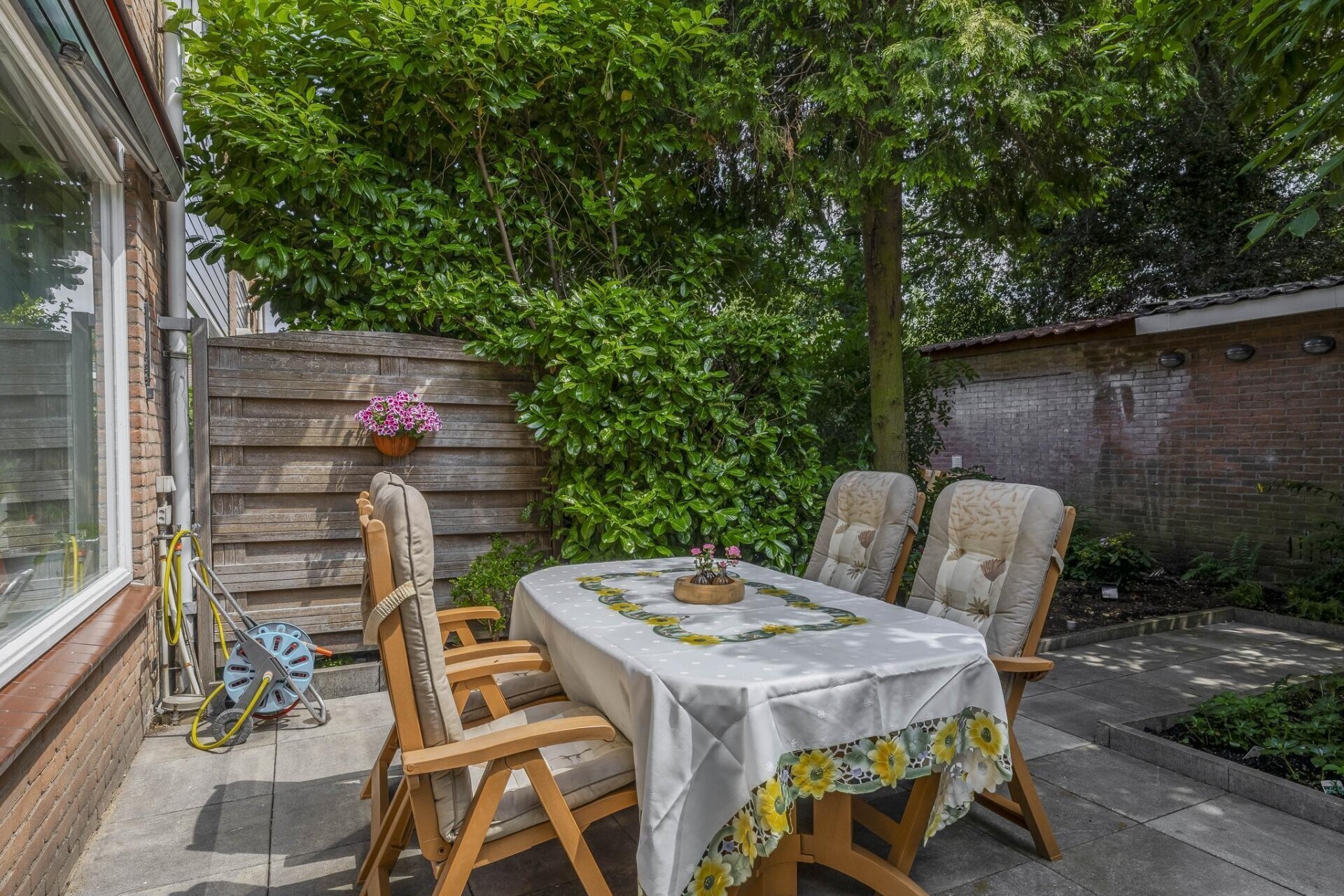 De achtertuin is een echte verrassing. Dankzij de ligging op het zuiden geniet je hier de hele dag van de zon. Er is voldoende ruimte voor een grote tuintafel, loungehoek en speelplek voor kinderen. De tuin, gerenoveerd in januari 2025, is grotendeels bestraat en biedt daarnaast groene borders en een achterom. Verder is de tuin ruim 30 meter diep en gelegen aan een singel. Een stenen berging zorgt voor extra opbergruimte voor fietsen of tuinspullen. De voortuin is netjes aangelegd en zorgt voor een vriendelijke uitstraling vanaf de straat.