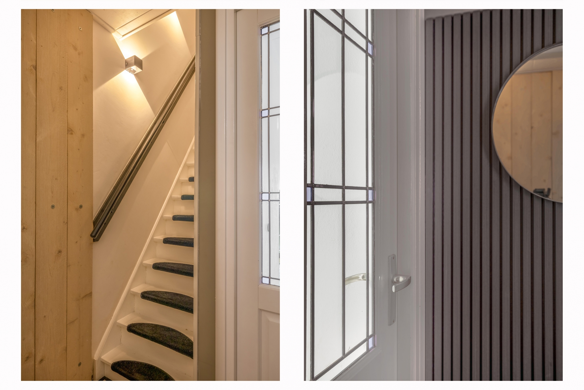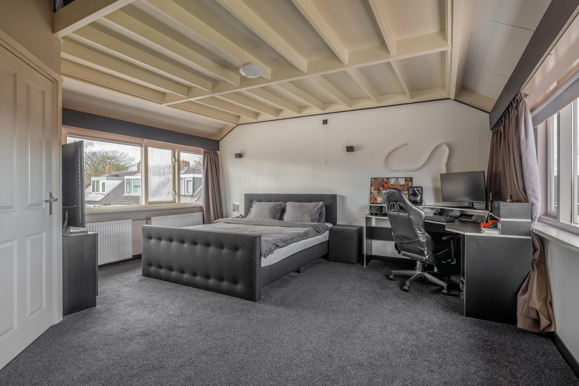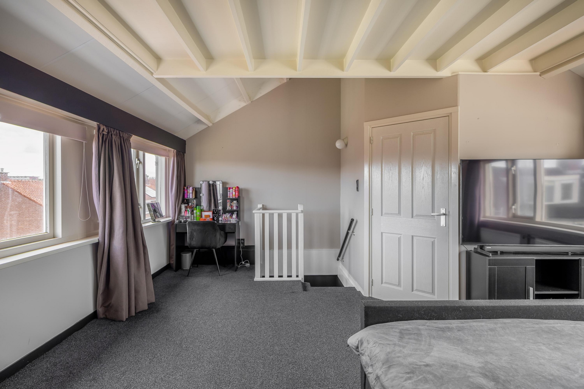 Op de eerste verdieping zijn drie slaapkamers te vinden: twee ruime kamers aan de voor- en achterzijde, plus een derde kamer die goed dienstdoet als kinder- of werkkamer. Dankzij de rechte gevels is hier weinig ruimteverlies. Dan de verrassing: de tweede verdieping is uitgebreid met een nokverhoging, waardoor een riante vierde slaapkamer is ontstaan. Deze kamer beslaat de volledige verdieping en is voorzien van een speels open plafond tot in de nok. De kamer is momenteel ingericht als master bedroom met werkplek, maar biedt volop mogelijkheden – van studio tot gamekamer. Ook is hier de was-/stookruimte met opstelling cv combiketel.