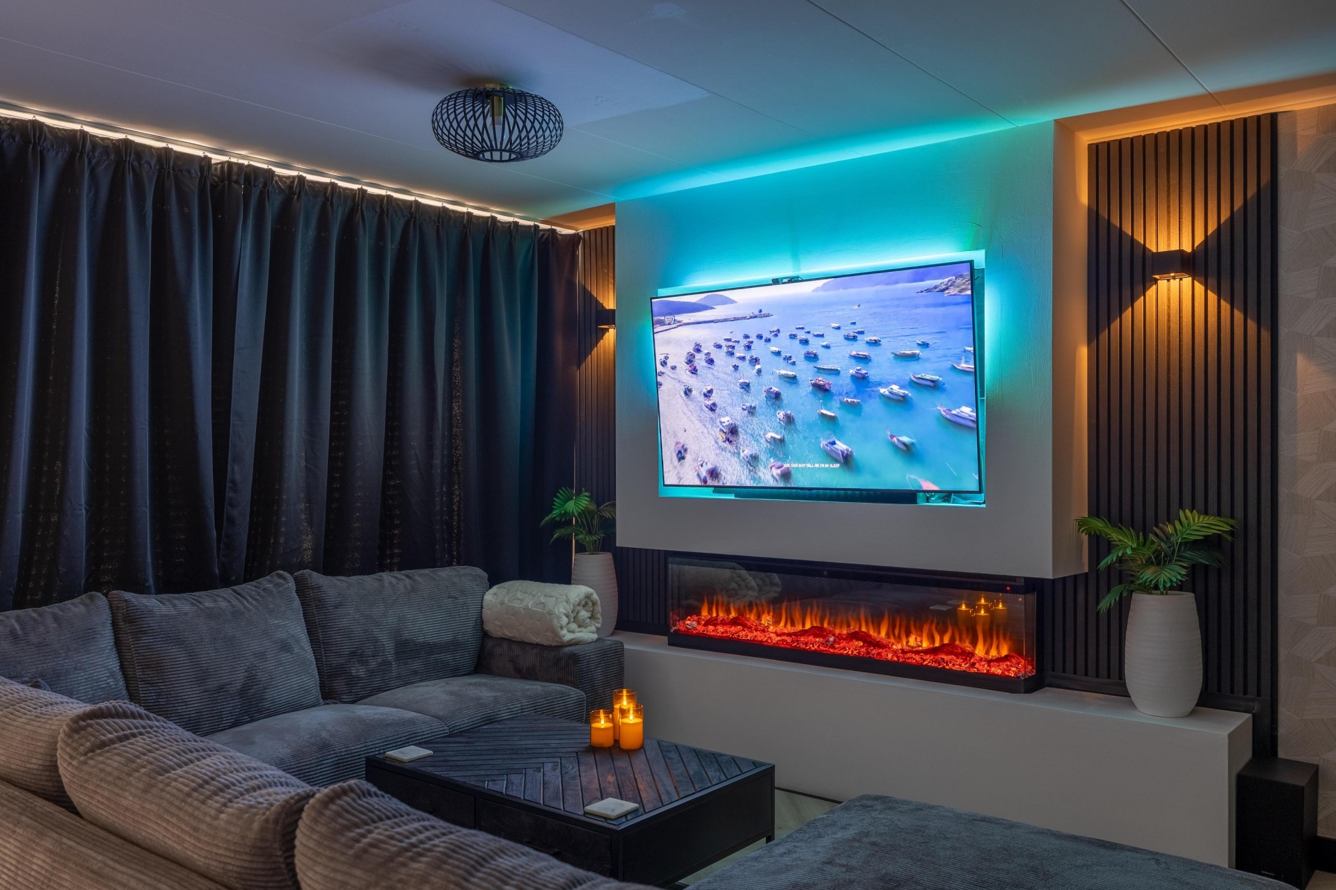 SFEERVOLLE LIVING MET CINEWALL EN ELEKTRISCHE HAARD