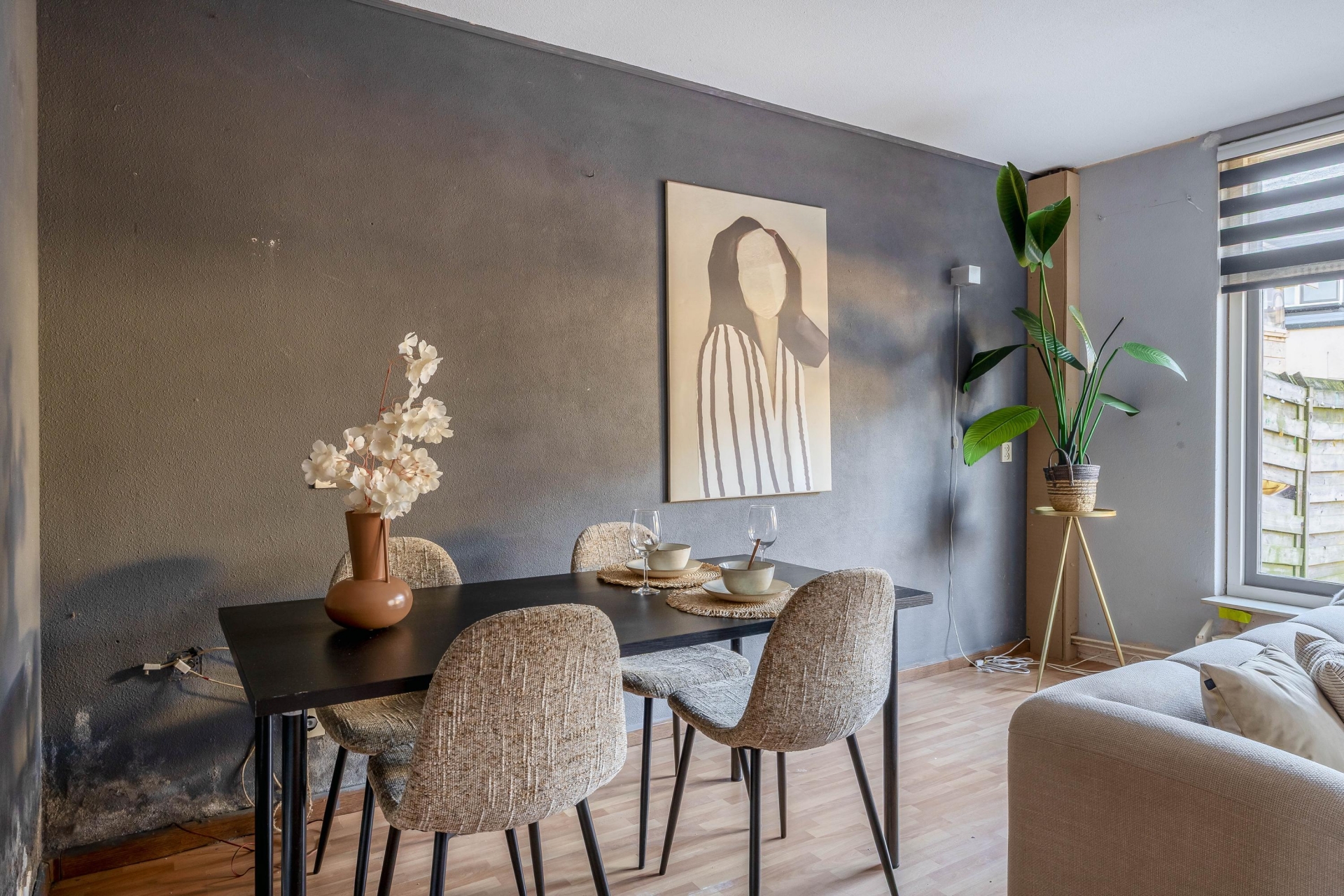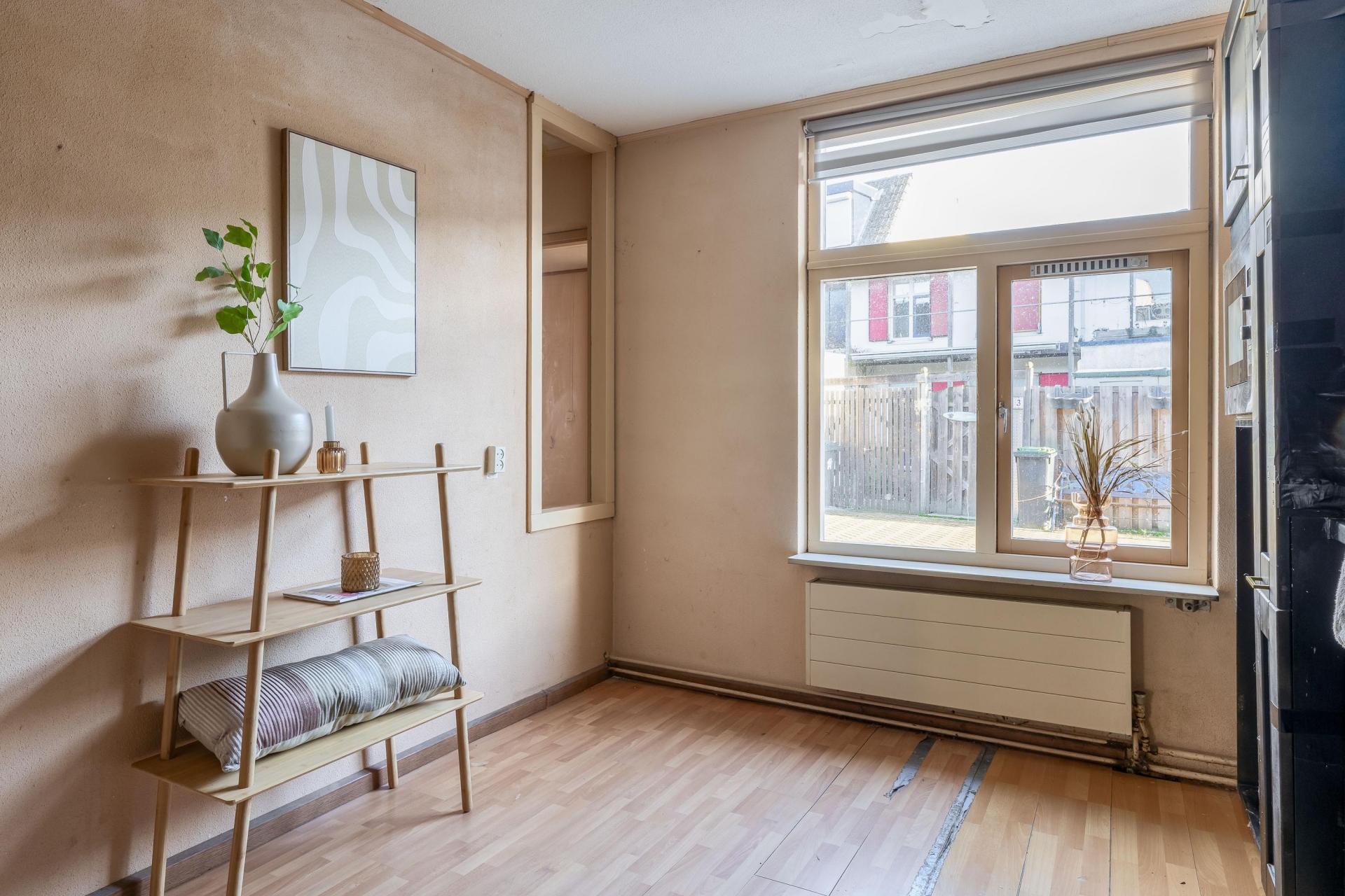 De woonkamer is licht en ruim opgezet, met grote ramen en een deur naar de tuin. Er is voldoende ruimte voor een gezellige zithoek én een eettafel en de indeling is praktisch. De tuin ligt op het zuidwesten, waardoor je hier al vroeg in de middag van de zon kunt genieten. Een ideale plek voor zomerse etentjes, spelende kinderen of gewoon lekker relaxen.
