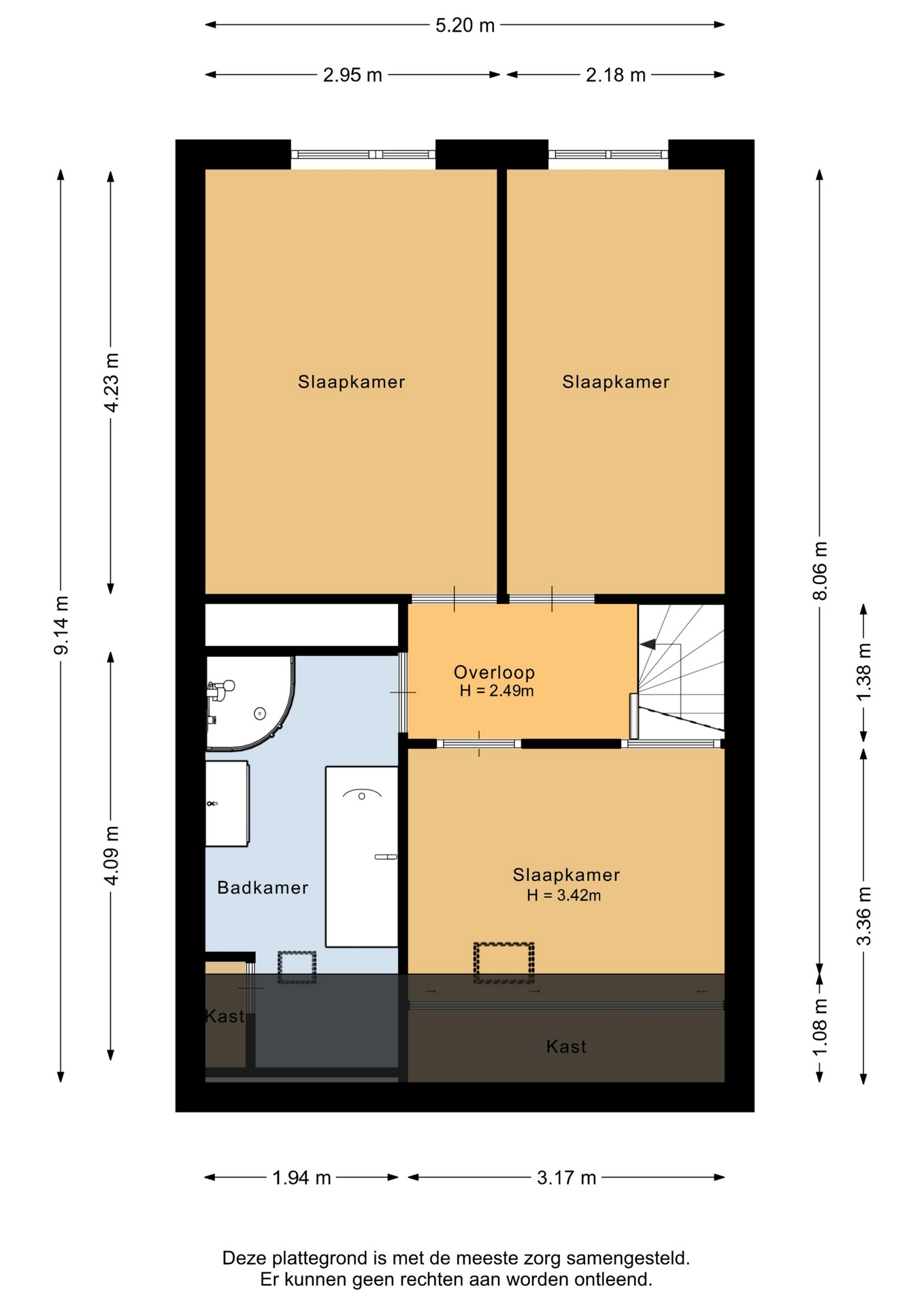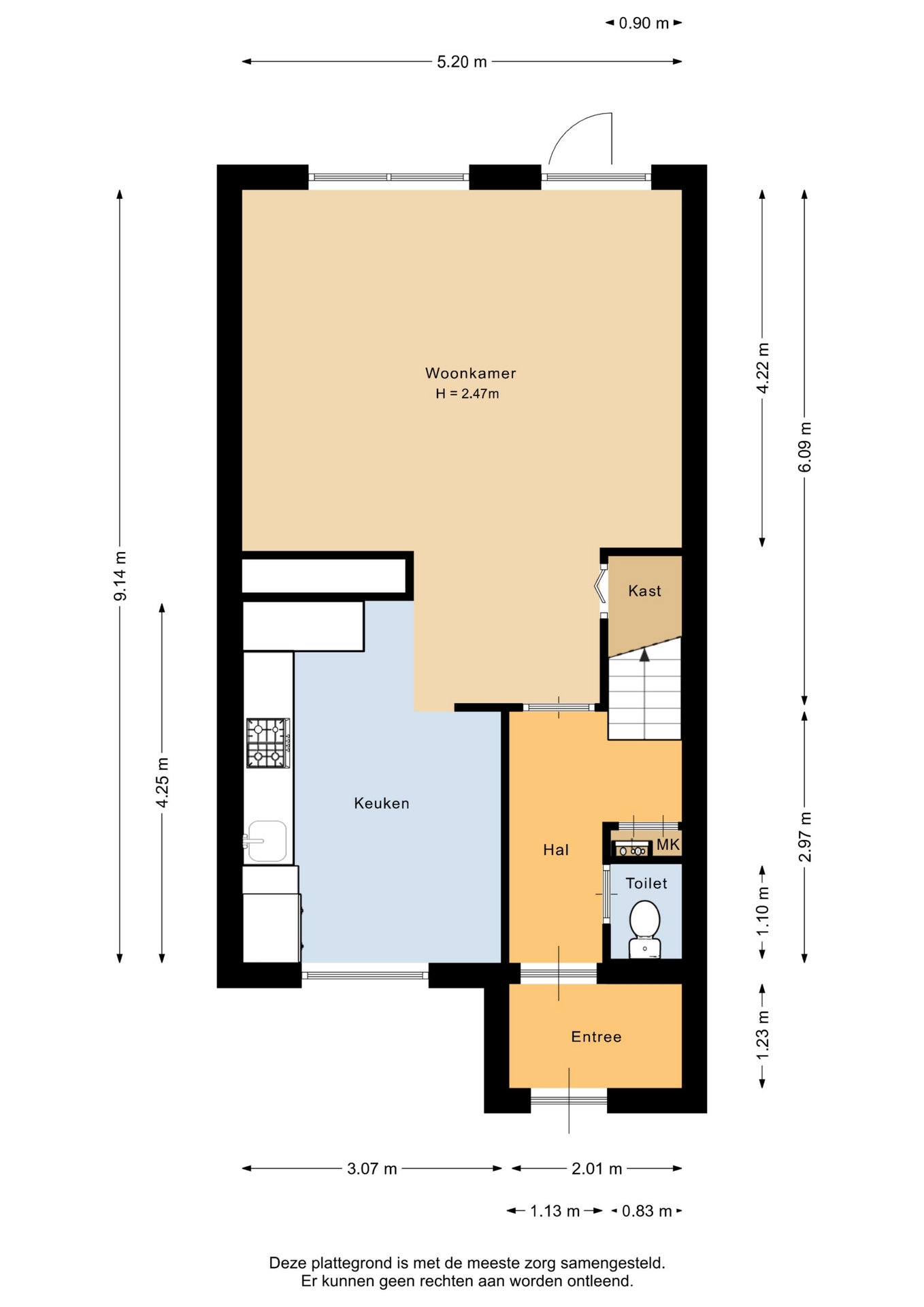 “Deze informatie is door ons met de nodige zorgvuldigheid samengesteld. Onzerzijds wordt echter geen enkele aansprakelijkheid aanvaard voor enige onvolledigheid, onjuistheid of anderszins, dan wel de gevolgen daarvan. Alle opgegeven maten en oppervlakten zijn indicatief.”