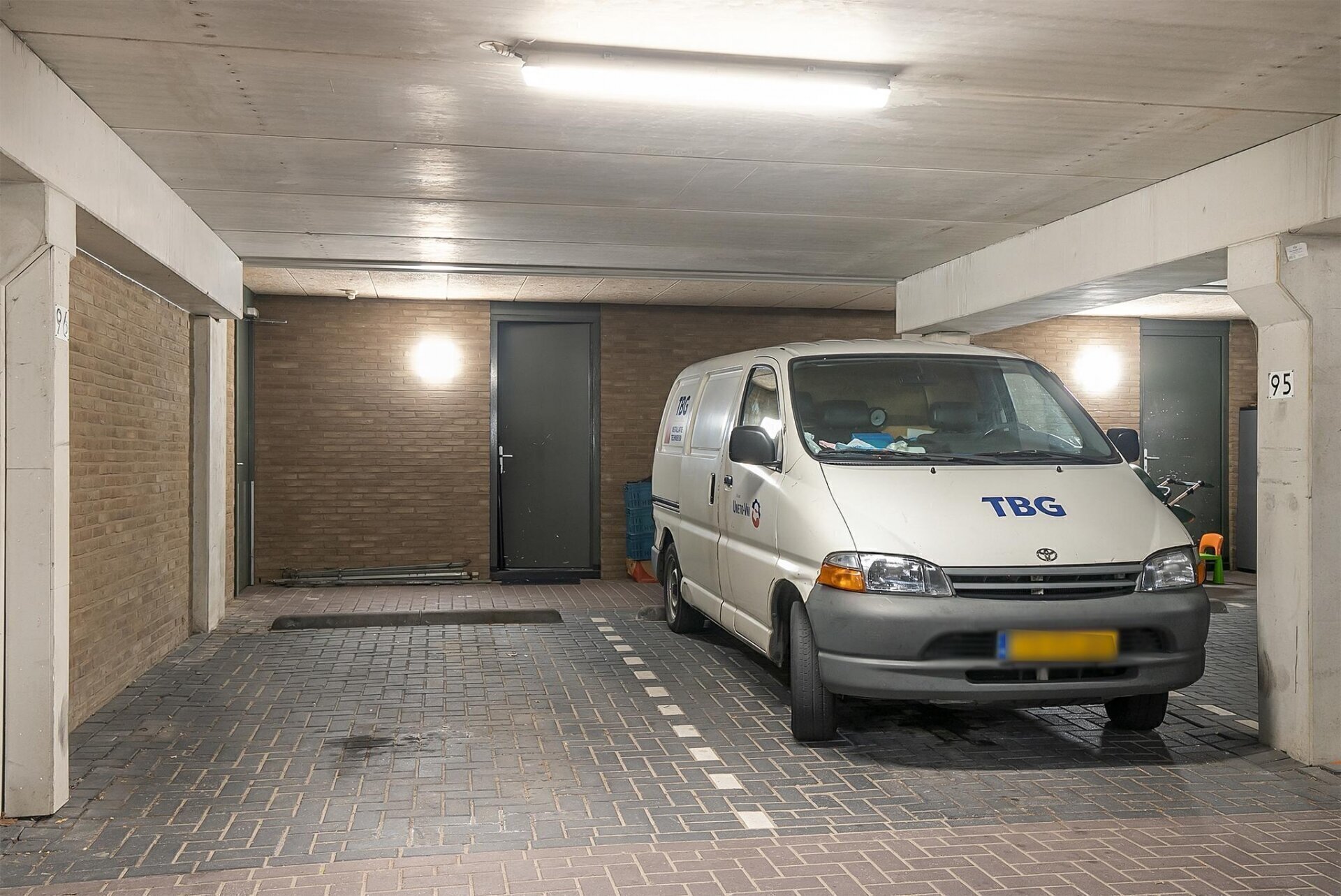 - Twee parkeerplaatsen in de afgesloten parkeergarage. De toegangspoort wordt op afstand elektrisch bediend.