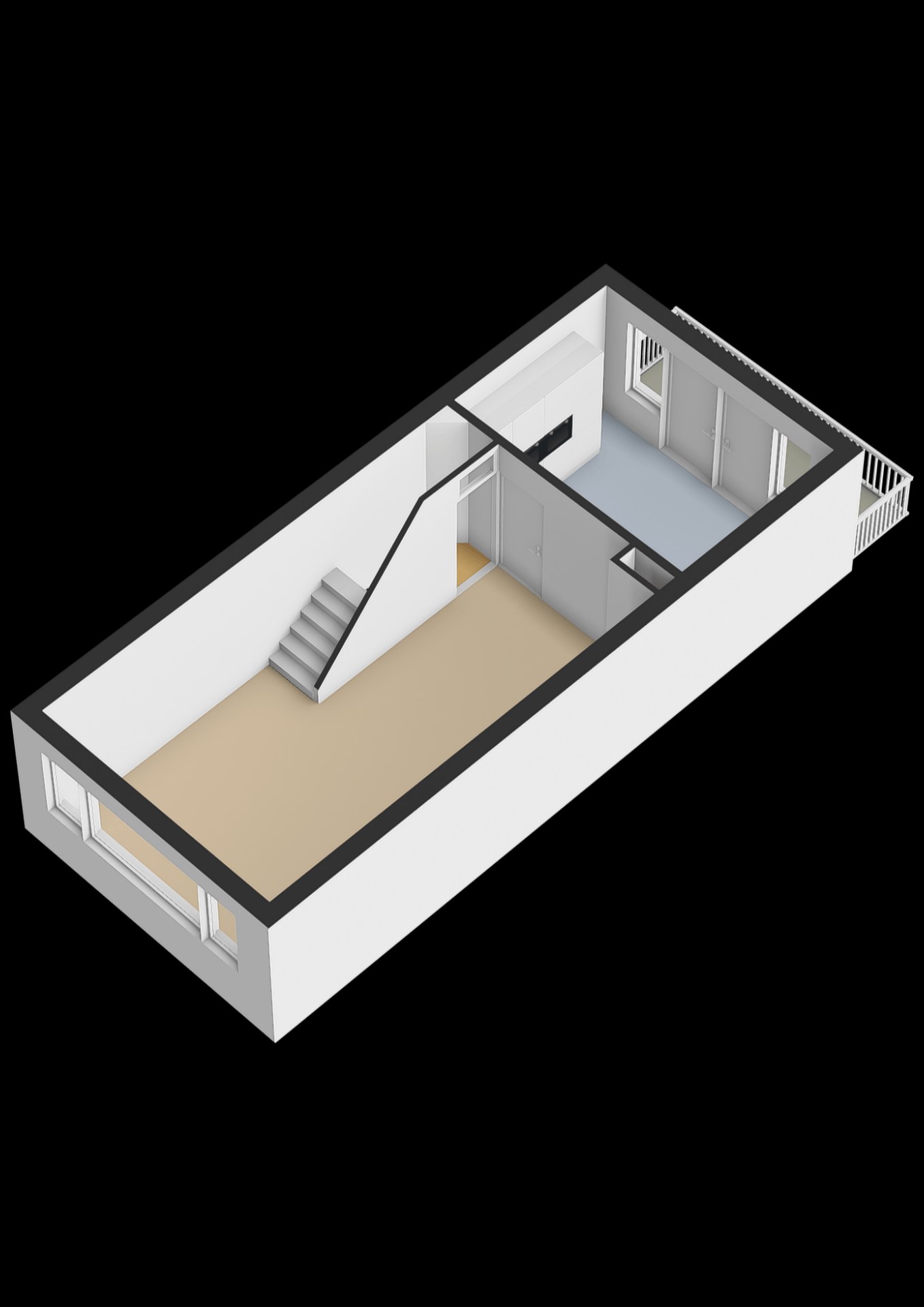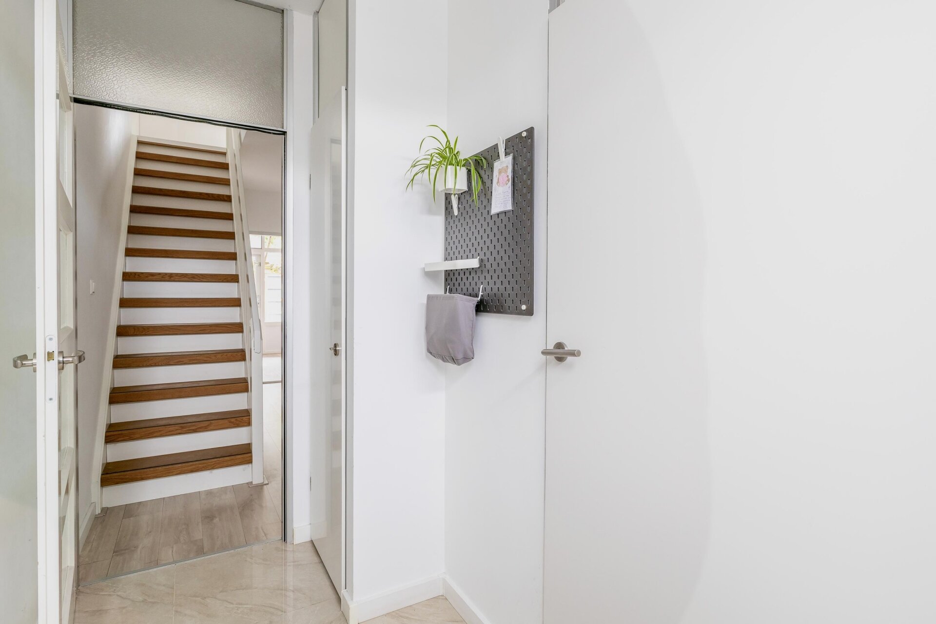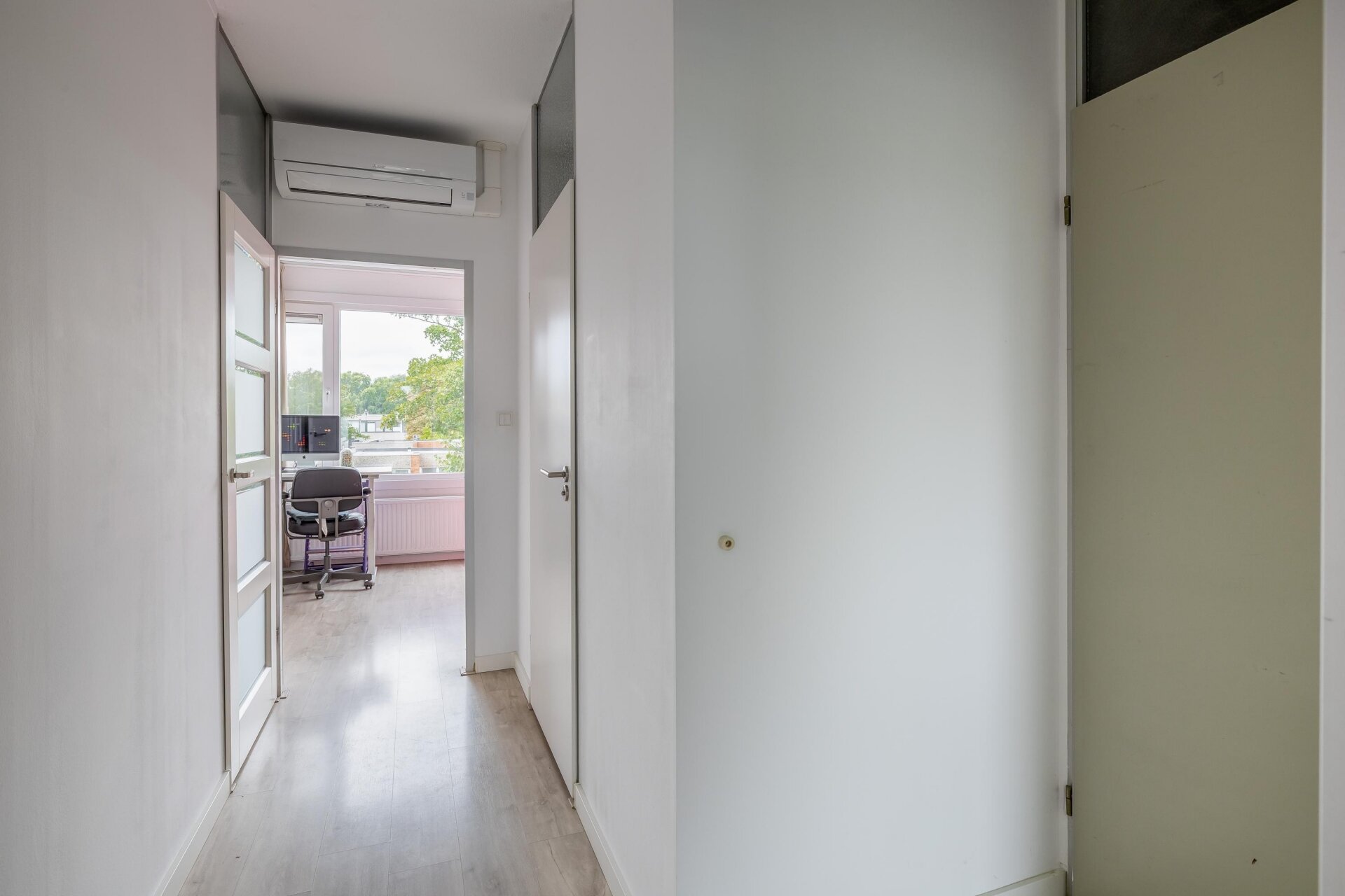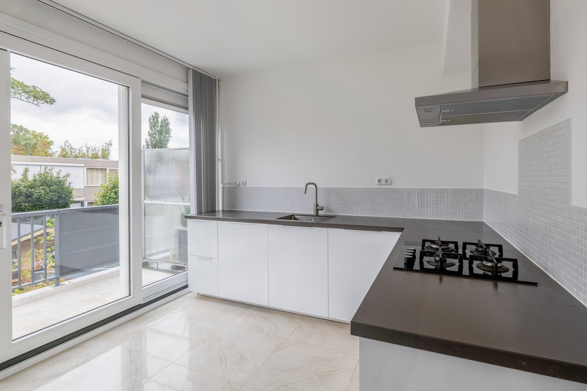 Op de eerste verdieping valt meteen de hoeveelheid licht op. Aan de voorzijde bevindt zich de royale woonkamer met groot raam en prettig uitzicht over de rustige straat. De strakke afwerking, lichte wanden en moderne vloer zorgen voor een rustige basis waarin je alle kanten op kunt met je eigen stijl. Aan de achterzijde ligt de keuken, voorzien van modern wit keukenblok met donker werkblad, een gaskookplaat en veel werkruimte. Via de schuifpui stap je zo het balkon op: een heerlijke plek om met een kop koffie of een goed glas wijn van de buitenlucht te genieten.