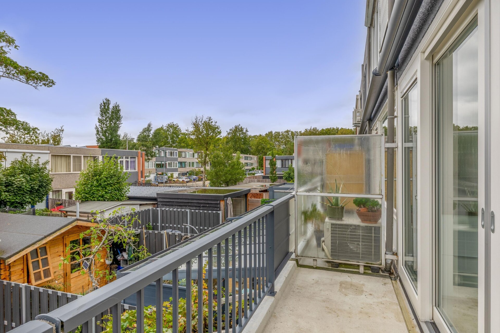 - Zonnescherm (elektrische bediening) aan de achterzijde van het huis op 1e verdieping;