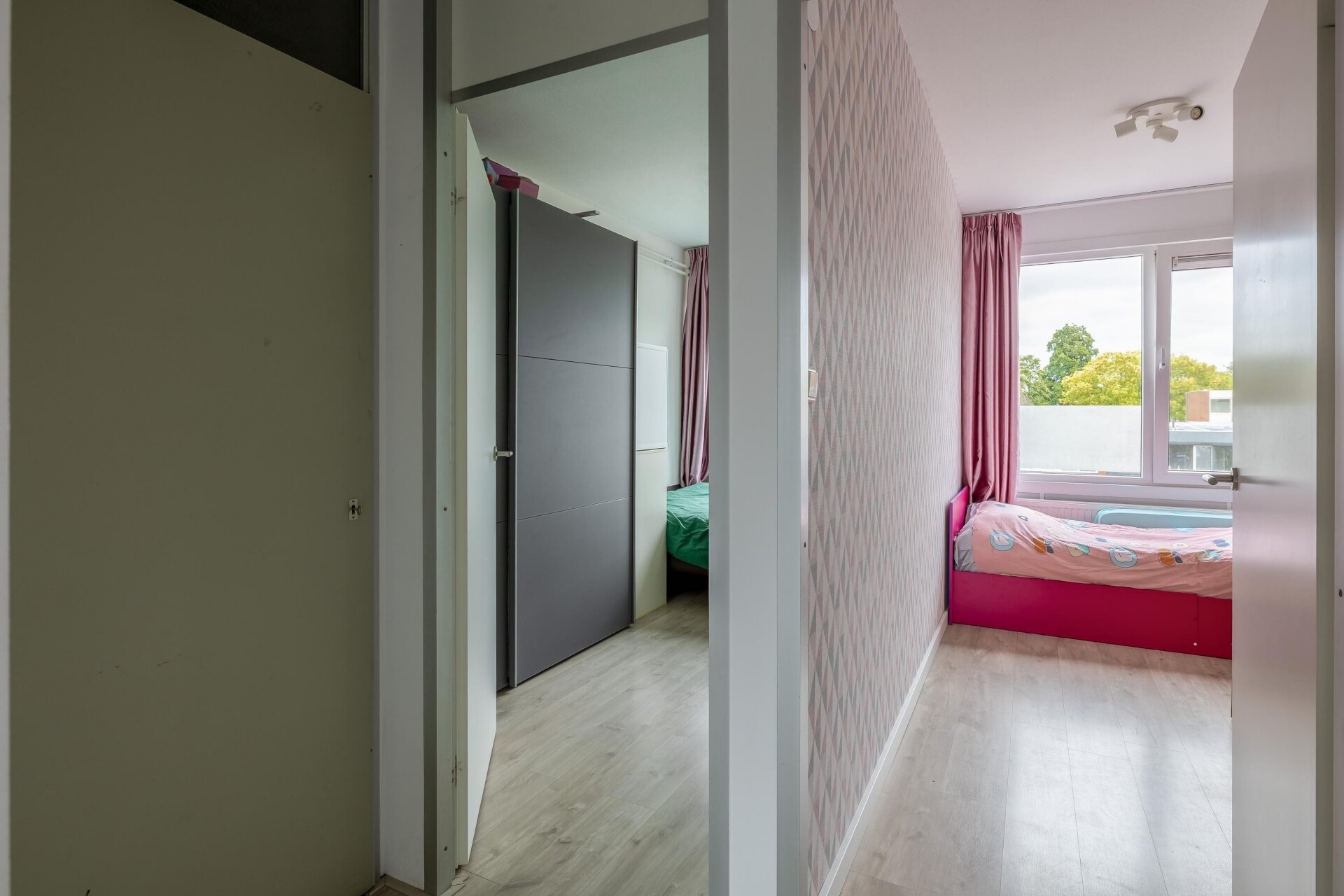 De woning beschikt over vier slaapkamers. Naast de multifunctionele kamer op de begane grond vind je op de tweede verdieping nog eens drie slaapkamers, waarvan de grootste aan de achterzijde ligt. De kamers zijn stuk voor stuk licht, functioneel en goed in te delen als slaap-, werk- of kinderkamer. De badkamer is eveneens op deze verdieping te vinden en is voorzien van een douche, Wastafelmeubel en toilet. Alles is fris en praktisch ingericht.