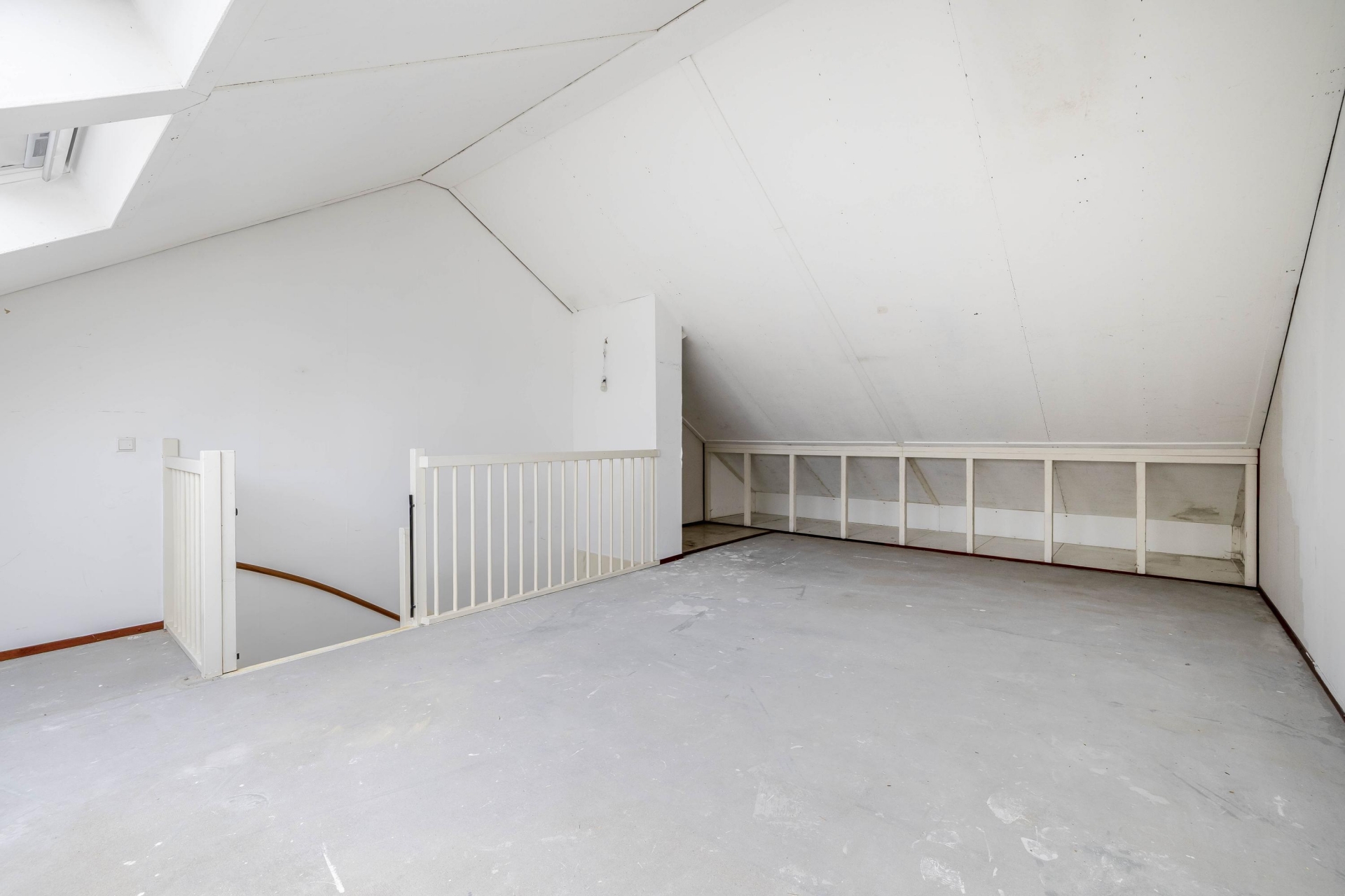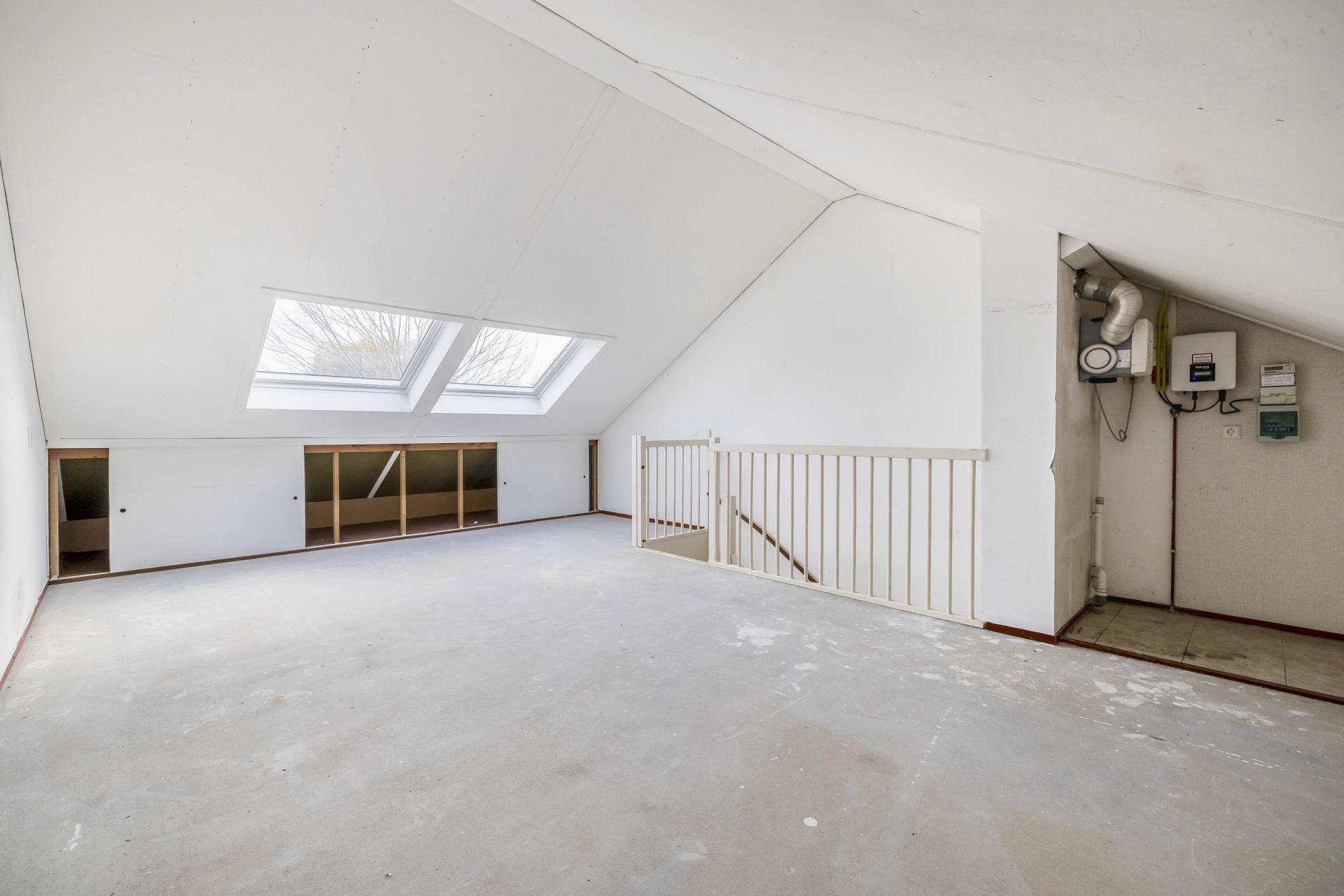 Ruime zolderverdieping met vernieuwde dakvensters en bergruimte. Betegelde opstelplaats voor de wasmachine en droger.