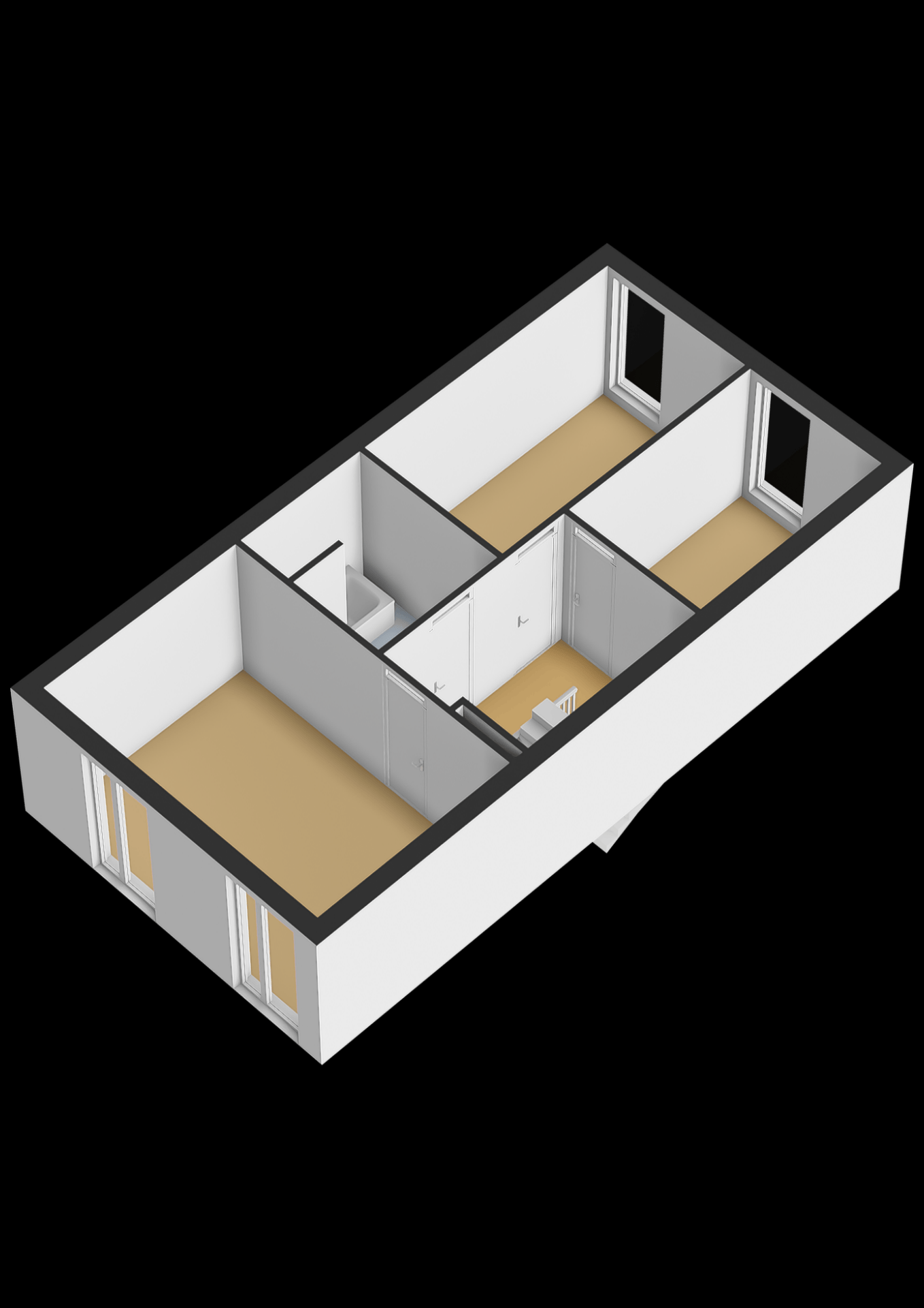 Overloop; slaapkamer 1 en slaapkamer 2; badkamer met wastafel, ligbad, douche en 2e toilet; 3e ruime slaapkamer.