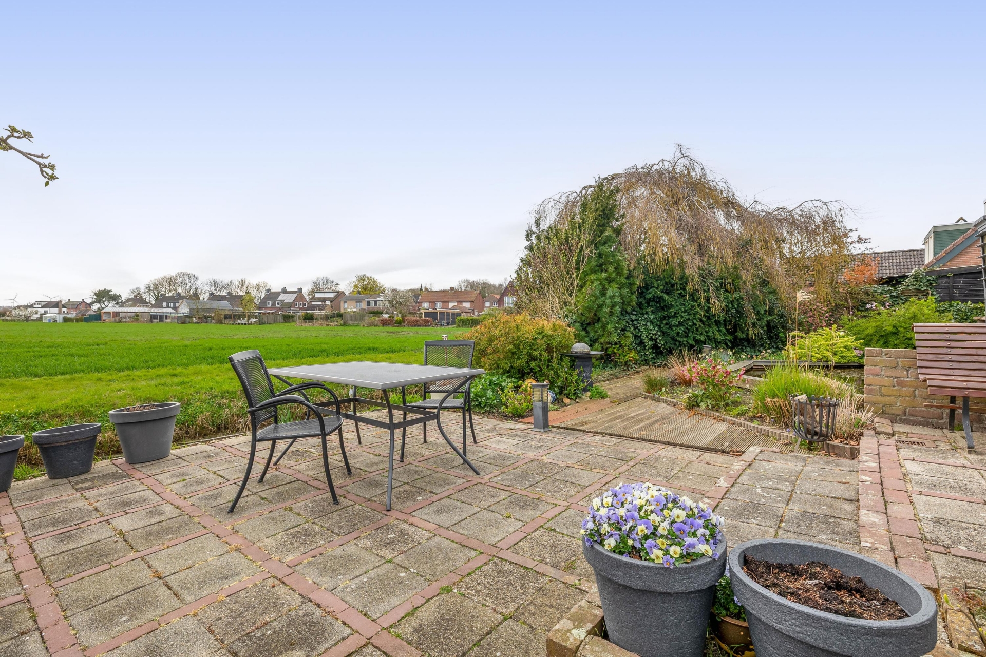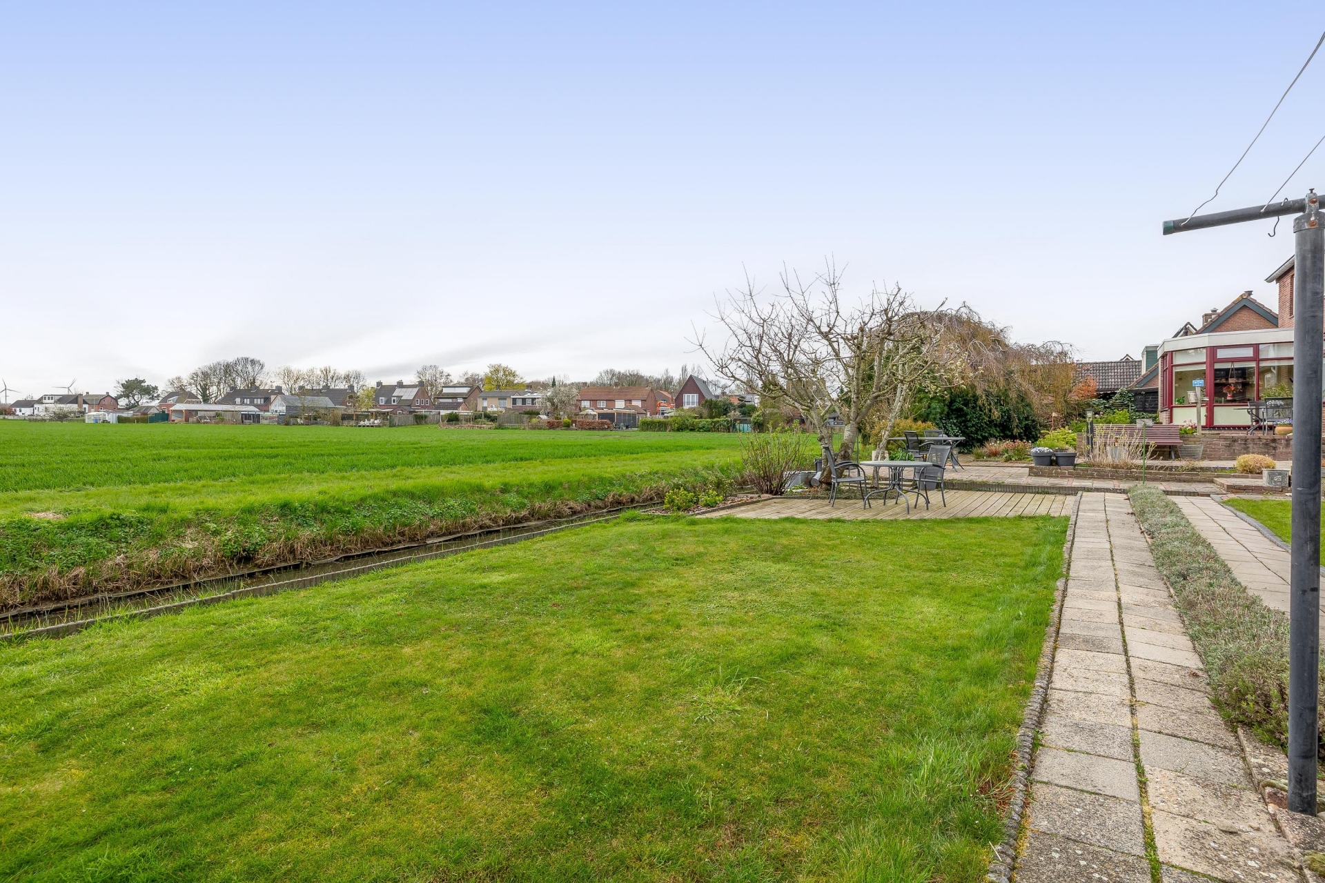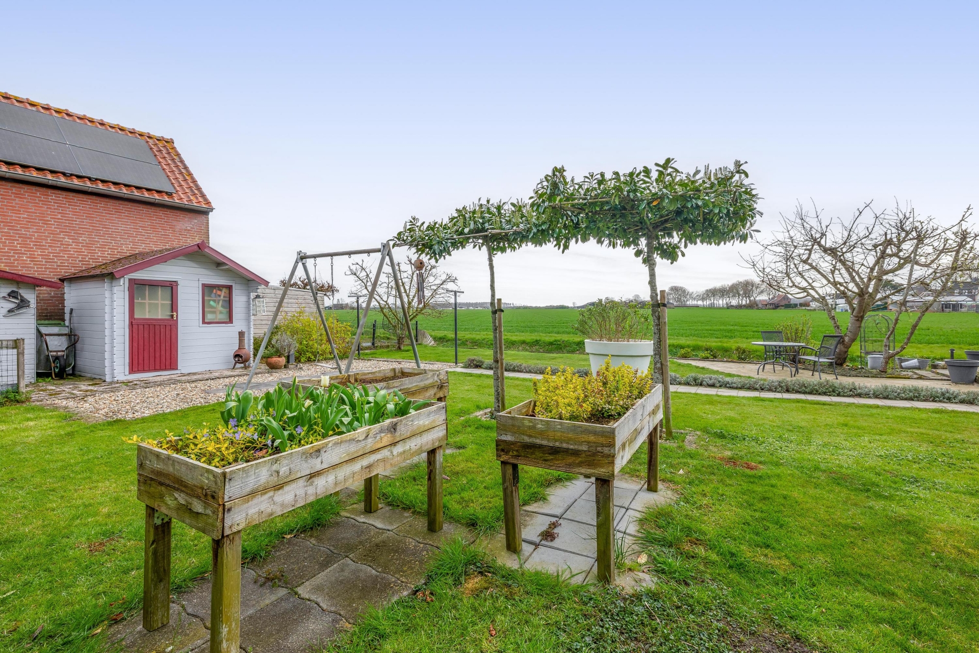 De tuin rondom het huis zorgt voor volop vrijheid en mogelijkheden. Of je nu wilt tuinieren, spelen of gewoon wilt genieten van het buitenleven, hier heb je alle ruimte. De achtertuin grenst direct aan de landerijen, waardoor je iedere dag een vrij en weids uitzicht hebt. De rustige ligging maakt het plaatje compleet: geen druk verkeer, maar juist een fijne woonomgeving waar je echt tot rust komt. Daarnaast is er een vrijstaande stenen berging aanwezig, ideaal voor fietsen, gereedschap of hobbyruimte.