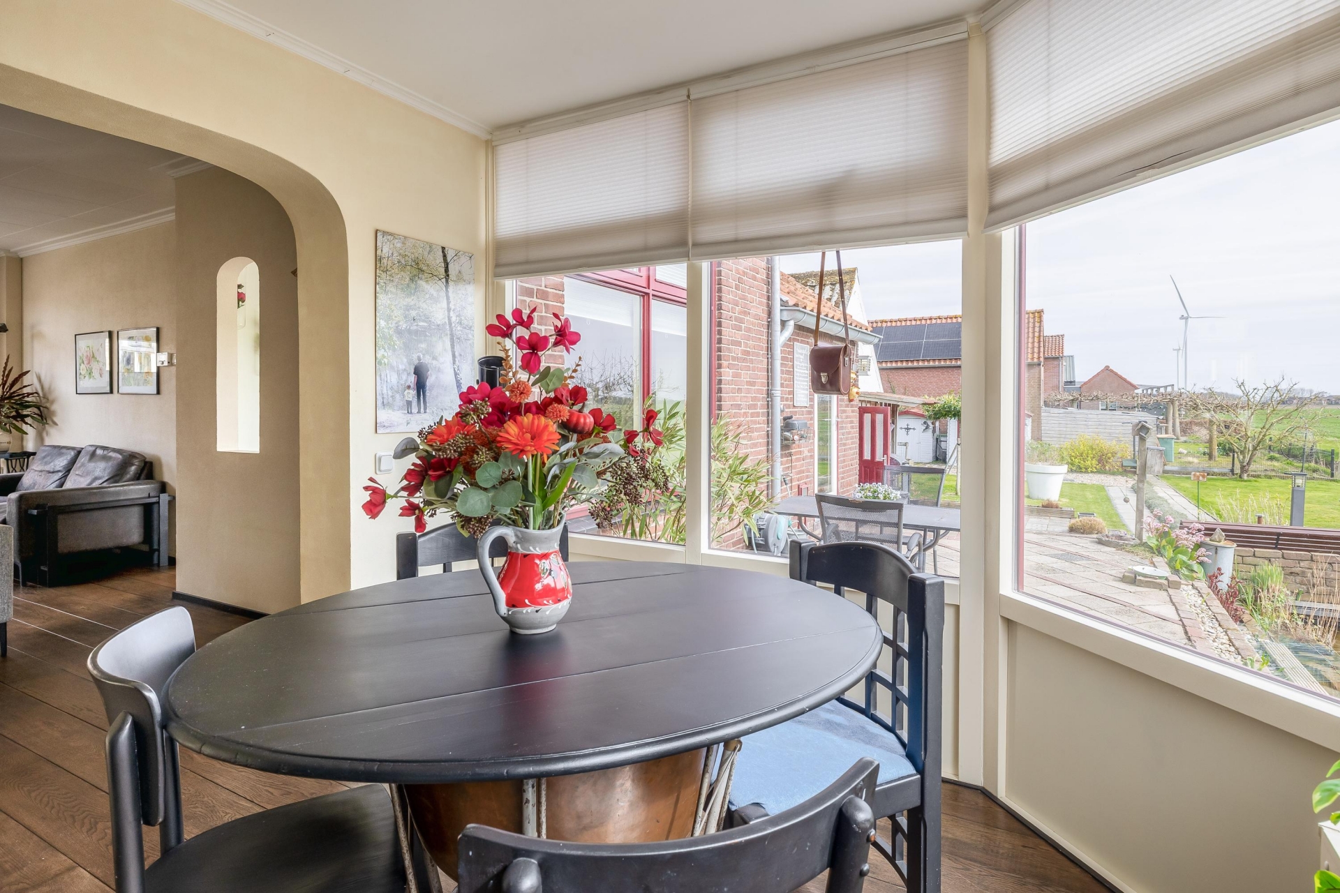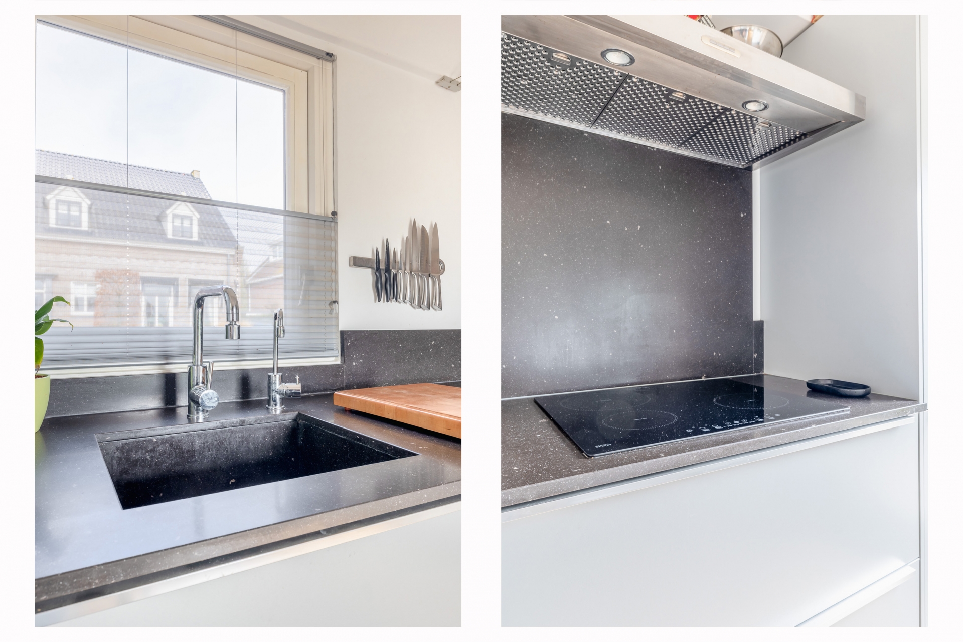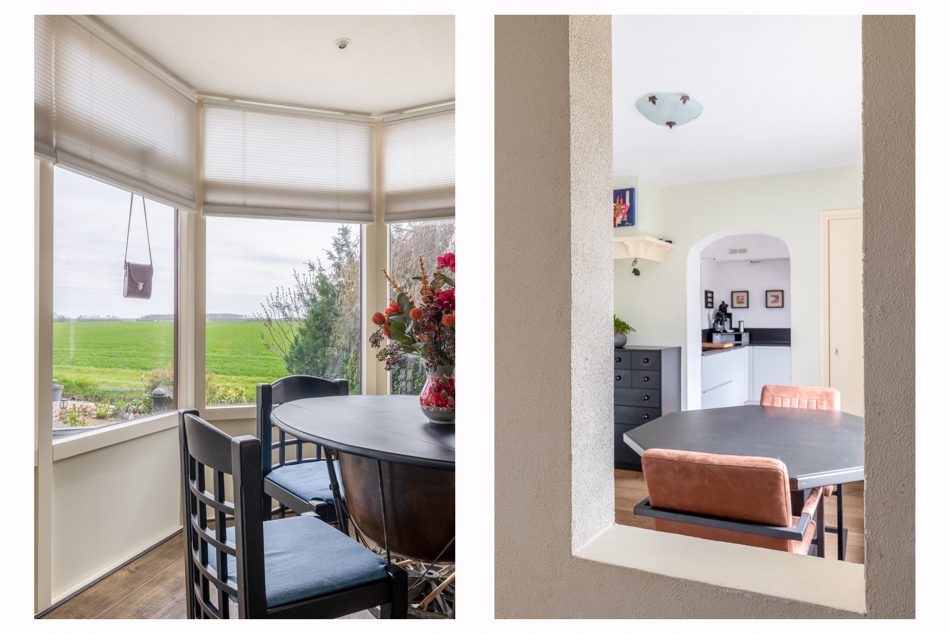 Binnen valt meteen het prettige licht op. De woonkamer is praktisch ingedeeld en biedt voldoende ruimte voor zowel een gezellige zithoek als een eettafel. De serre vormt een mooie aanvulling op de leefruimte en zorgt voor een fijne overgang tussen binnen en buiten. Dit is een plek waar je al vroeg in het voorjaar van de zon geniet en ook op minder warme dagen comfortabel zit. Vanuit de serre en de woonkamer heb je een mooi zicht op de tuin en de landerijen daarachter. De verzorgde keuken is functioneel ingericht, o.a. voorzien van inductiekookplaat, koelvriescombinatie, combi-oven en composiet werkblad. Daarnaast staat de keuken in directe verbinding met de woon- en buitenruimte wat zorgt voor een open en betrokken sfeer in huis.