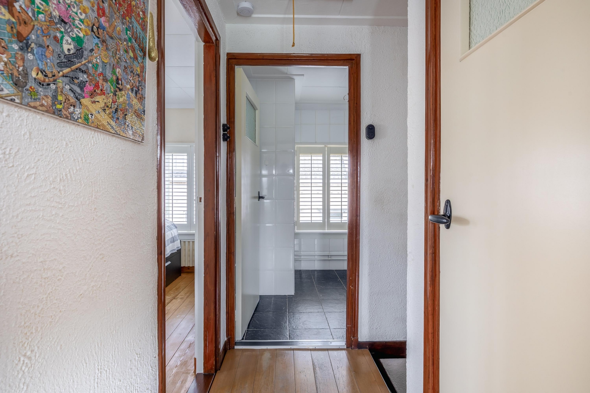 Op de eerste verdieping bevinden zich twee slaapkamers, waarbij de grootste slaapkamer voldoende ruimte biedt voor een tweepersoonsbed en kastruimte. De tweede kamer is ideaal als kinder-, werk- of logeerkamer. De indeling is praktisch en biedt mogelijkheden om het geheel naar eigen smaak aan te passen of zelfs een extra slaapkamer te realiseren. Daarnaast beschikt het huis over een kelder, wat zorgt voor extra bergruimte, en een bergzolder met goede stahoogte die bereikbaar is via een vlizotrap. Deze zolder biedt kansen voor het creëren van extra woonruimte, afhankelijk van jouw wensen.