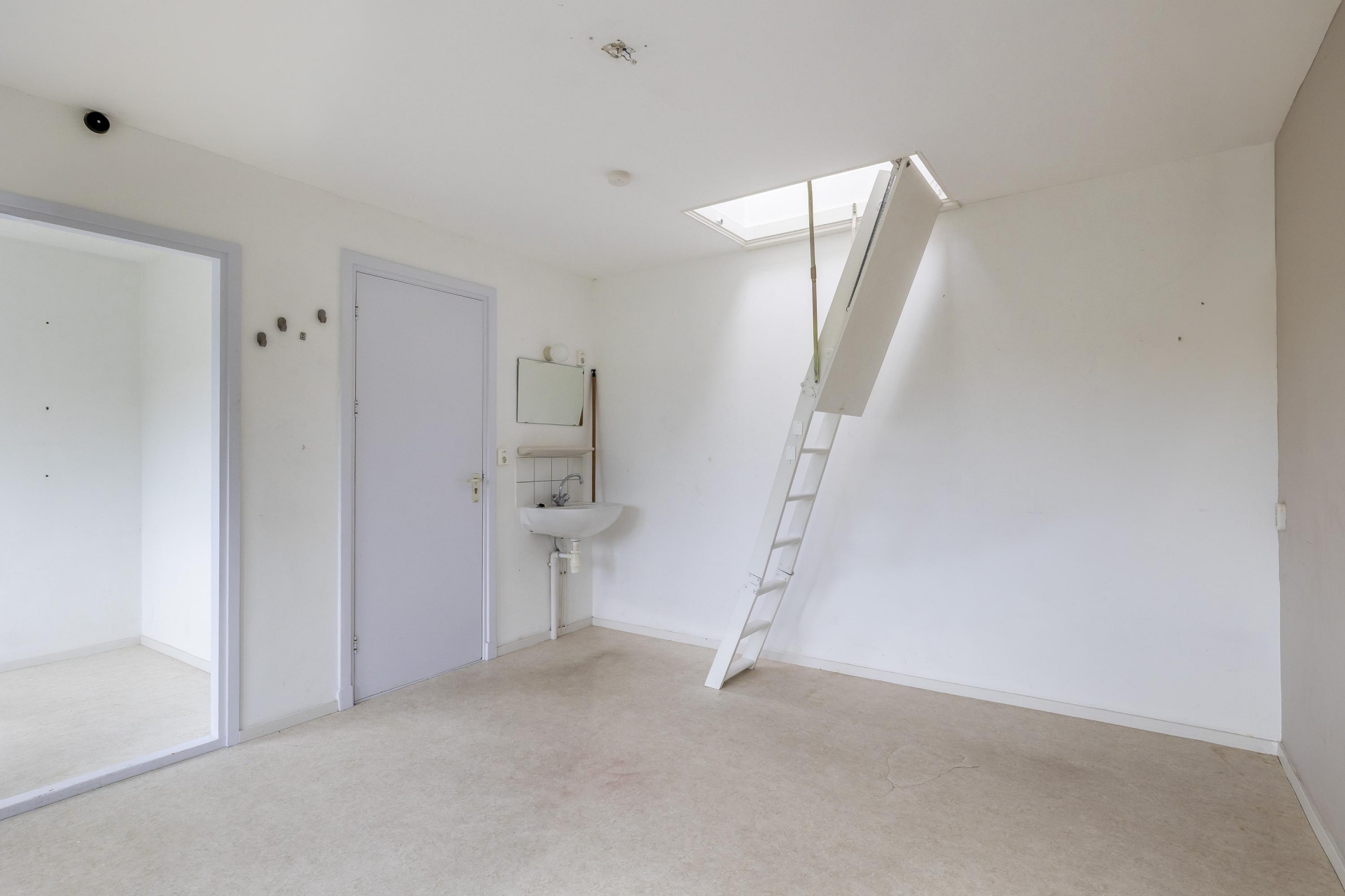 De zolder is opgedeeld in 3 aparte ruimtes met elke een eigen toegang met vlizotrap. De zolder is voorzien van dakvensters.