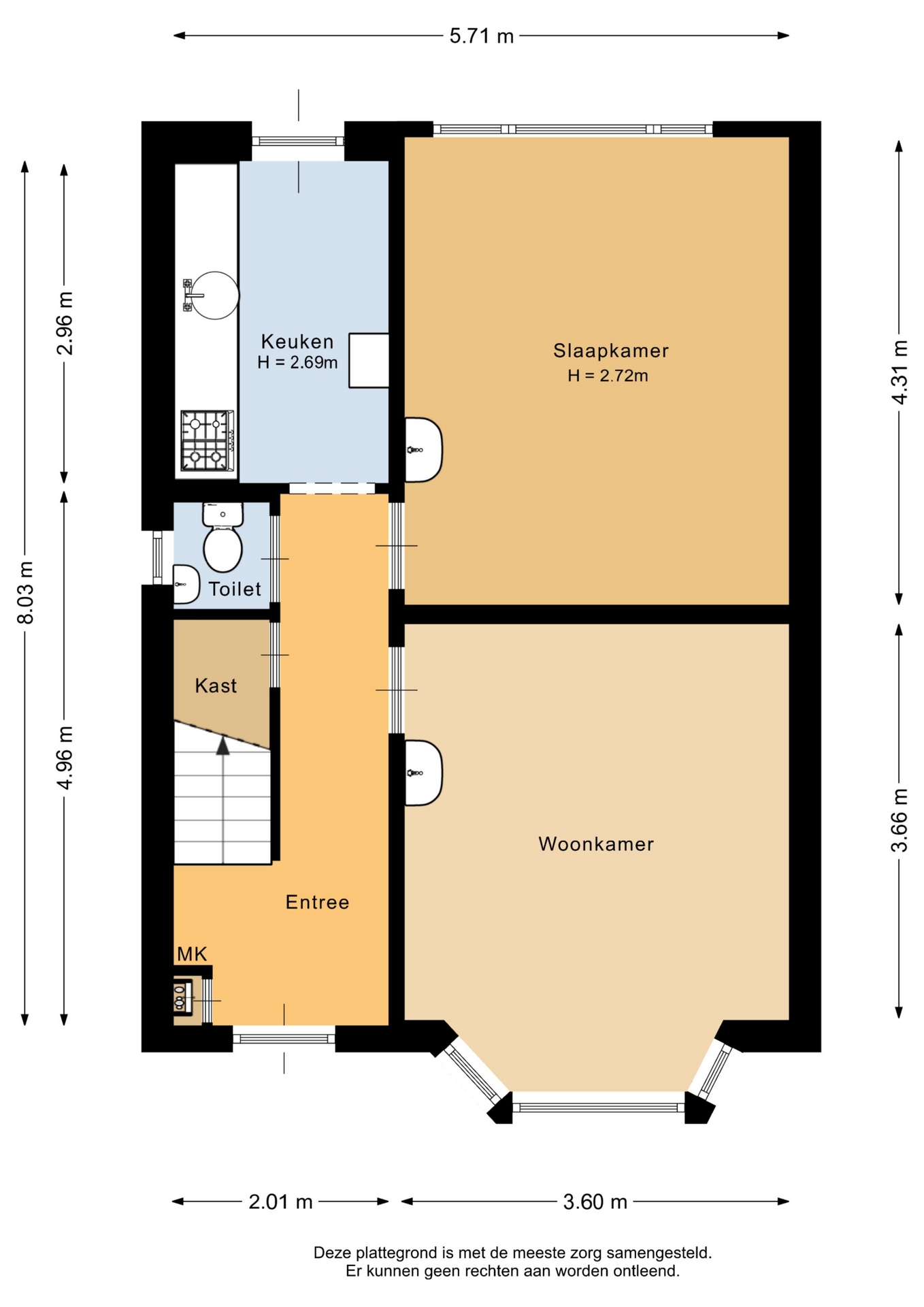 "Deze informatie is door ons met de nodige zorgvuldigheid samengesteld. Onzerzijds wordt echter geen enkele aansprakelijkheid aanvaard voor enige onvolledigheid, onjuistheid of anderszins, dan wel de gevolgen daarvan. Alle opgegeven maten en oppervlakten zijn indicatief. Van toepassing zijn de NVM voorwaarden".