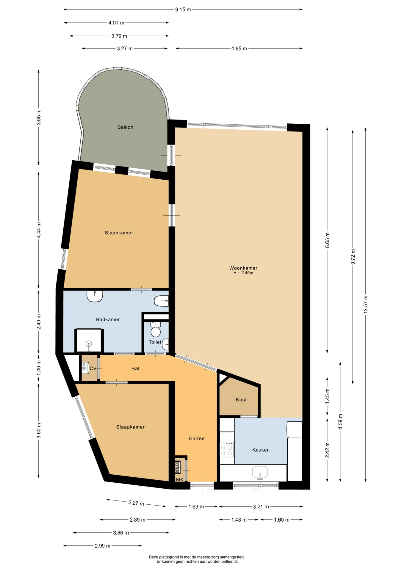 "Deze informatie is door ons met de nodige zorgvuldigheid samengesteld. Onzerzijds wordt echter geen enkele aansprakelijkheid aanvaard voor enige onvolledigheid, onjuistheid of anderszins, dan wel de gevolgen daarvan. Alle opgegeven maten en oppervlakten zijn indicatief.”