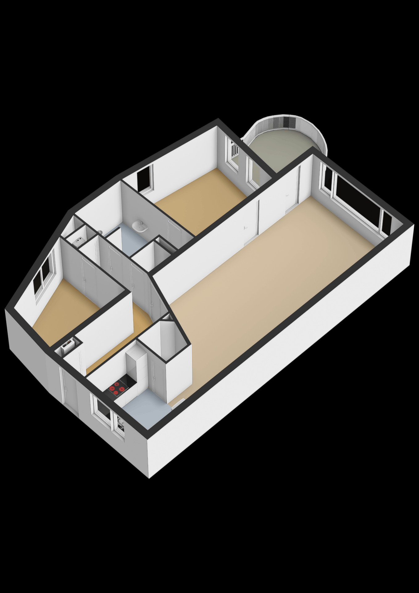 - Twee slaapkamers;